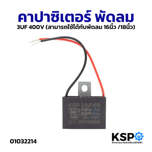 คาปาซิเตอร์ พัดลม 2 ค่า 2.5Uf + 3.5Uf 300V 3สาย อุตสาหกรรม 18-22" นิ้ว อะไหล่พัดลม