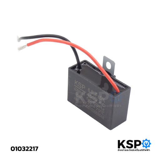 คาปาซิเตอร์ พัดลม เครื่องซักผ้า 6uF 450V (เหลี่ยมมีสาย) อะไหล่พัดลม