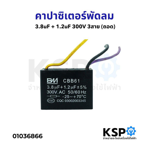 คาปาซิเตอร์พัดลม CBB61 2ค่า 3สาย 1Uf + 4Uf 250V อะไหล่พัดลม