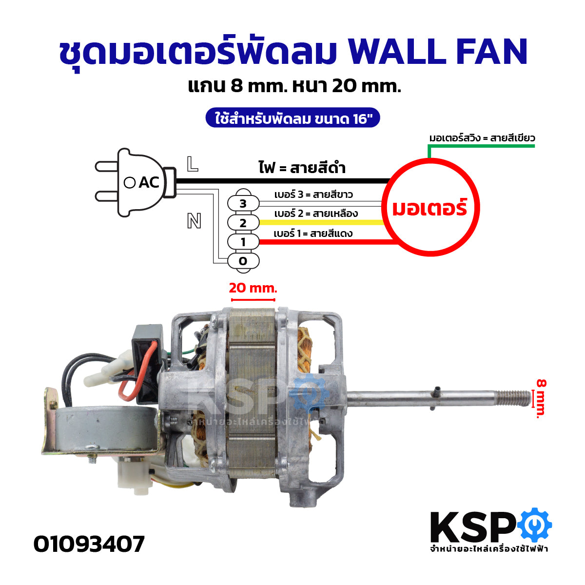- มอเตอร์นี้เหมาะสำหรับพัดลมติดผนังขนาด 16 นิ้ว
