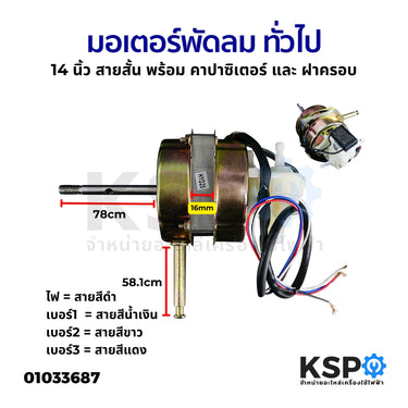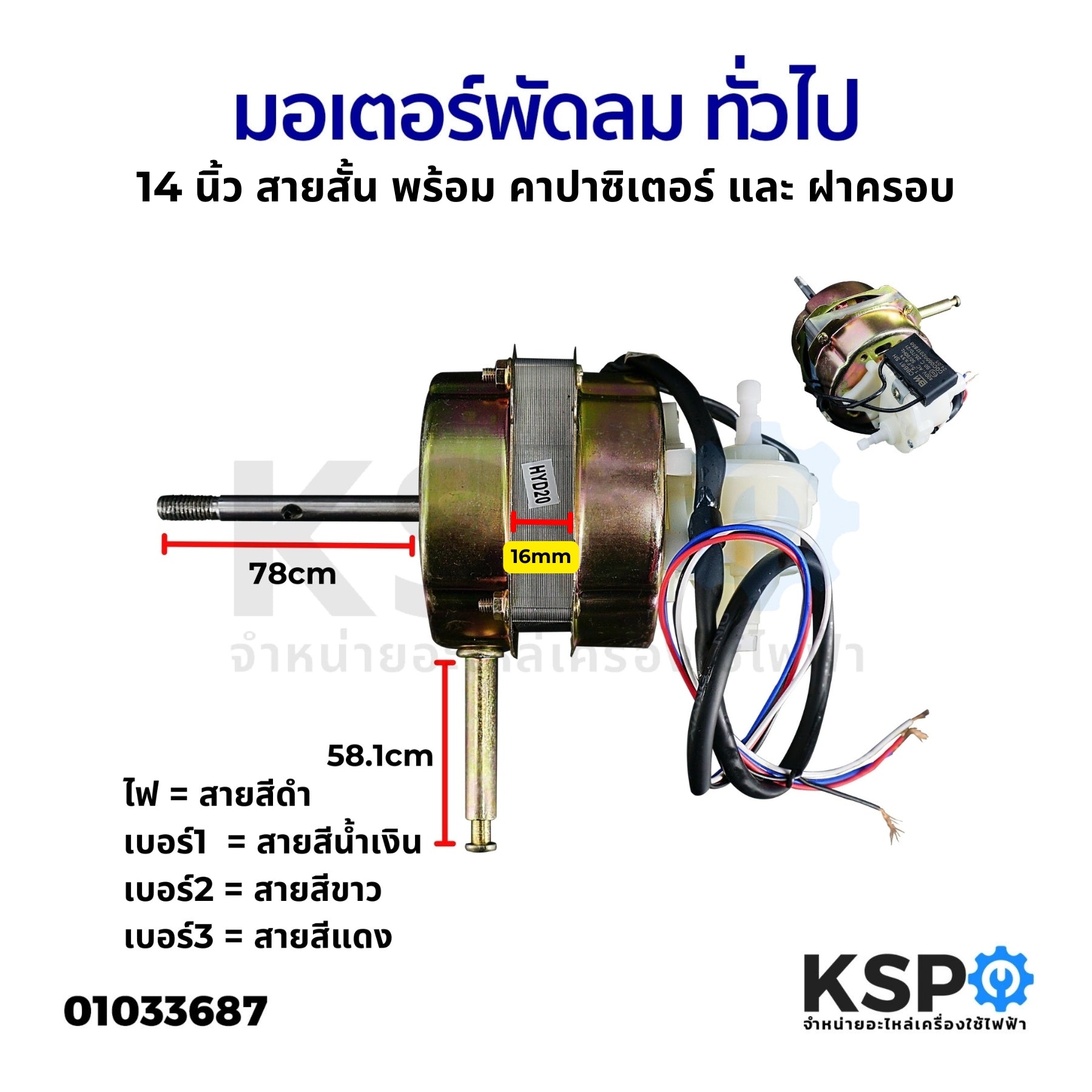 มอเตอร์พัดลม ทั่วไป 14 นิ้ว สายสั้น พร้อม คาปาซิเตอร์ และ ฝาครอบ อะไหล่พัดลม