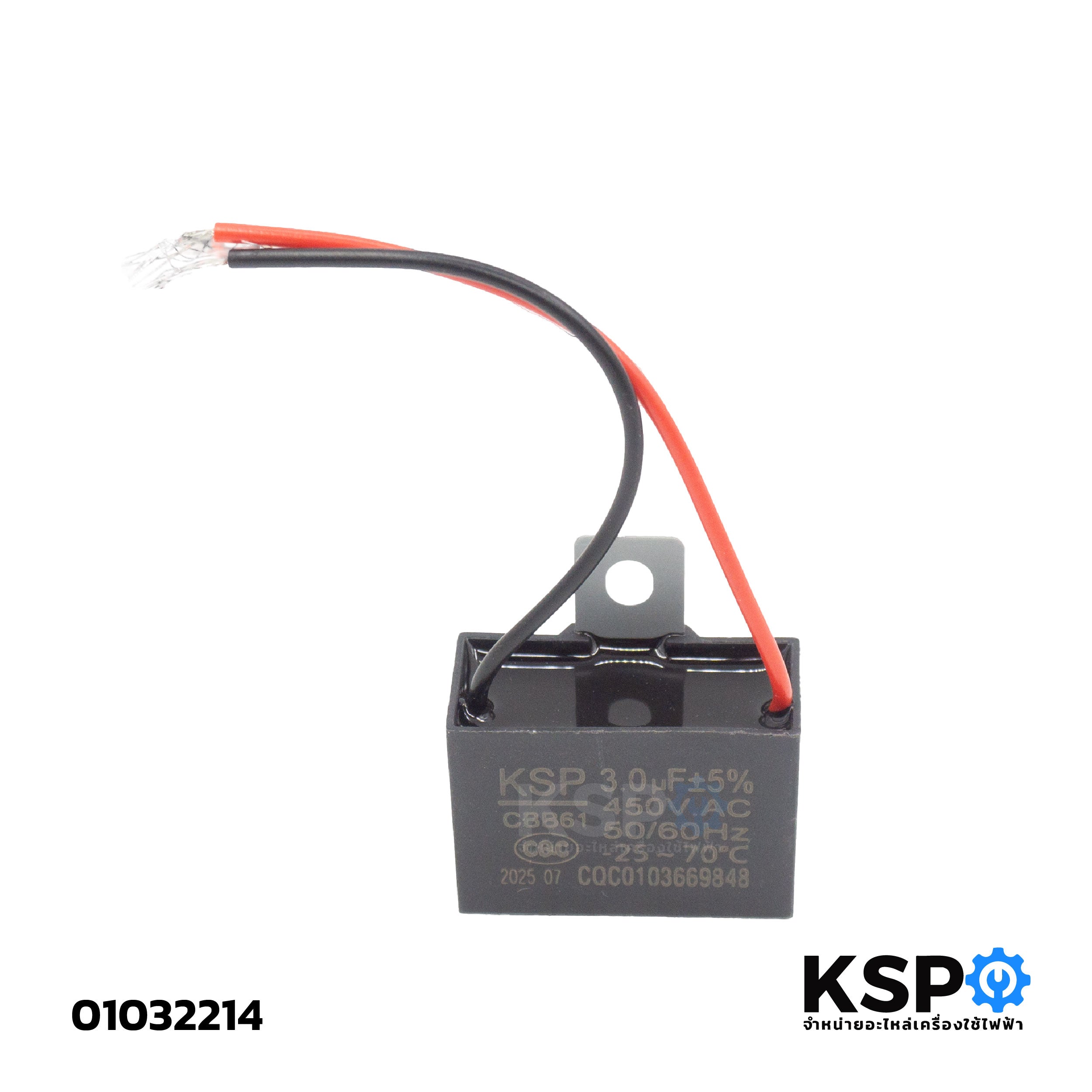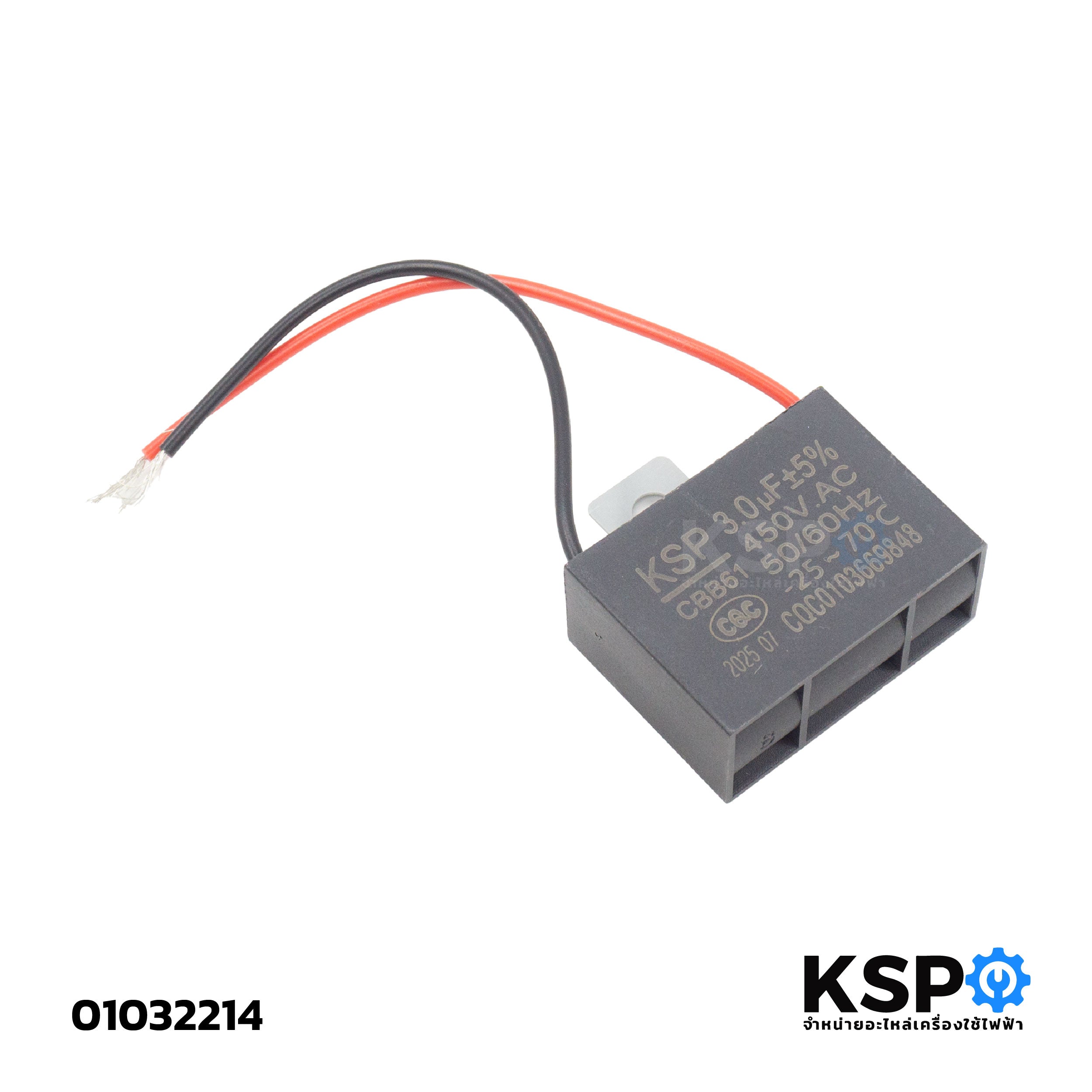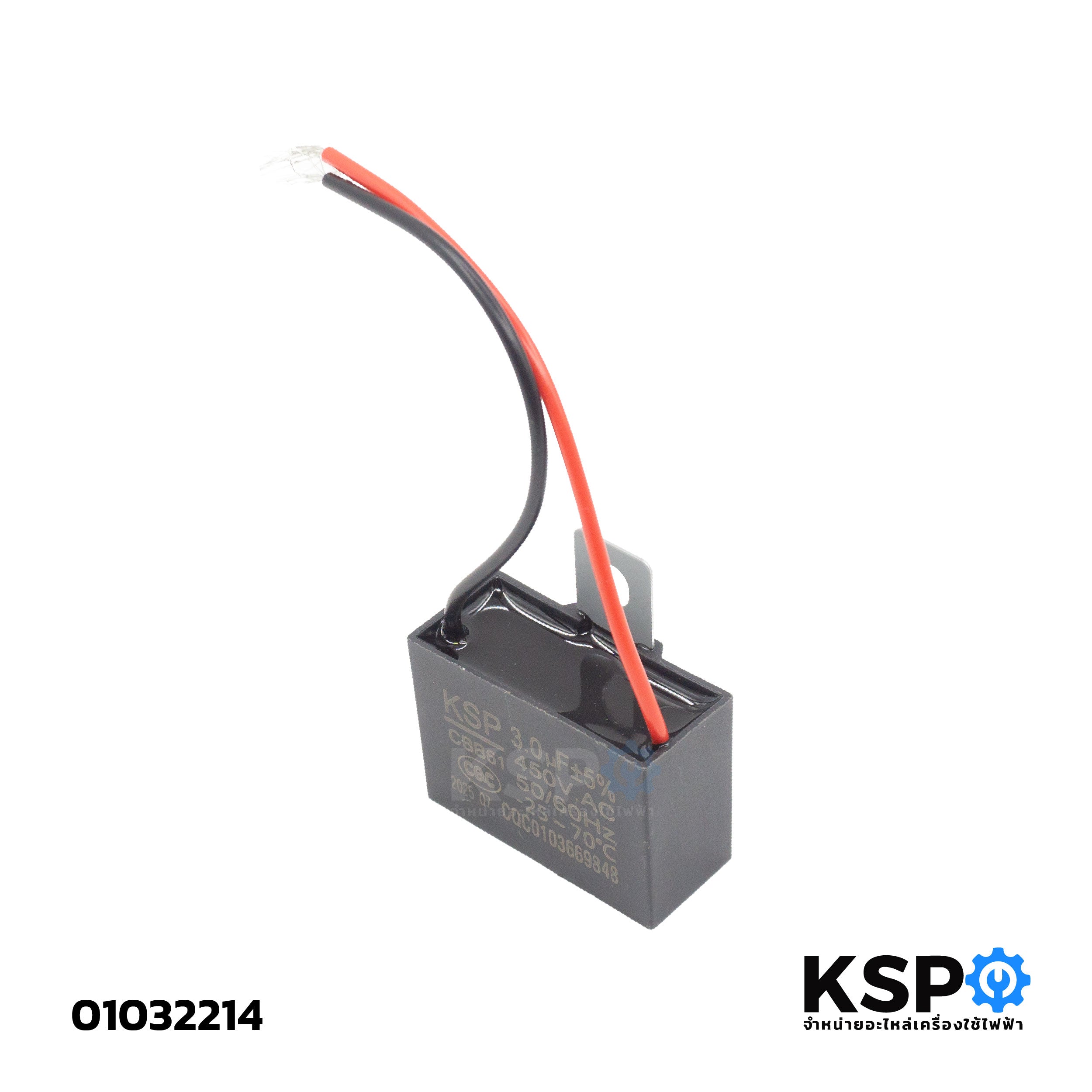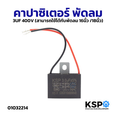 คาปาซิเตอร์พัดลม 3uF 500V ยี่ห้อทั่วไป (เหลี่ยมมีสาย) อะไหล่พัดลม