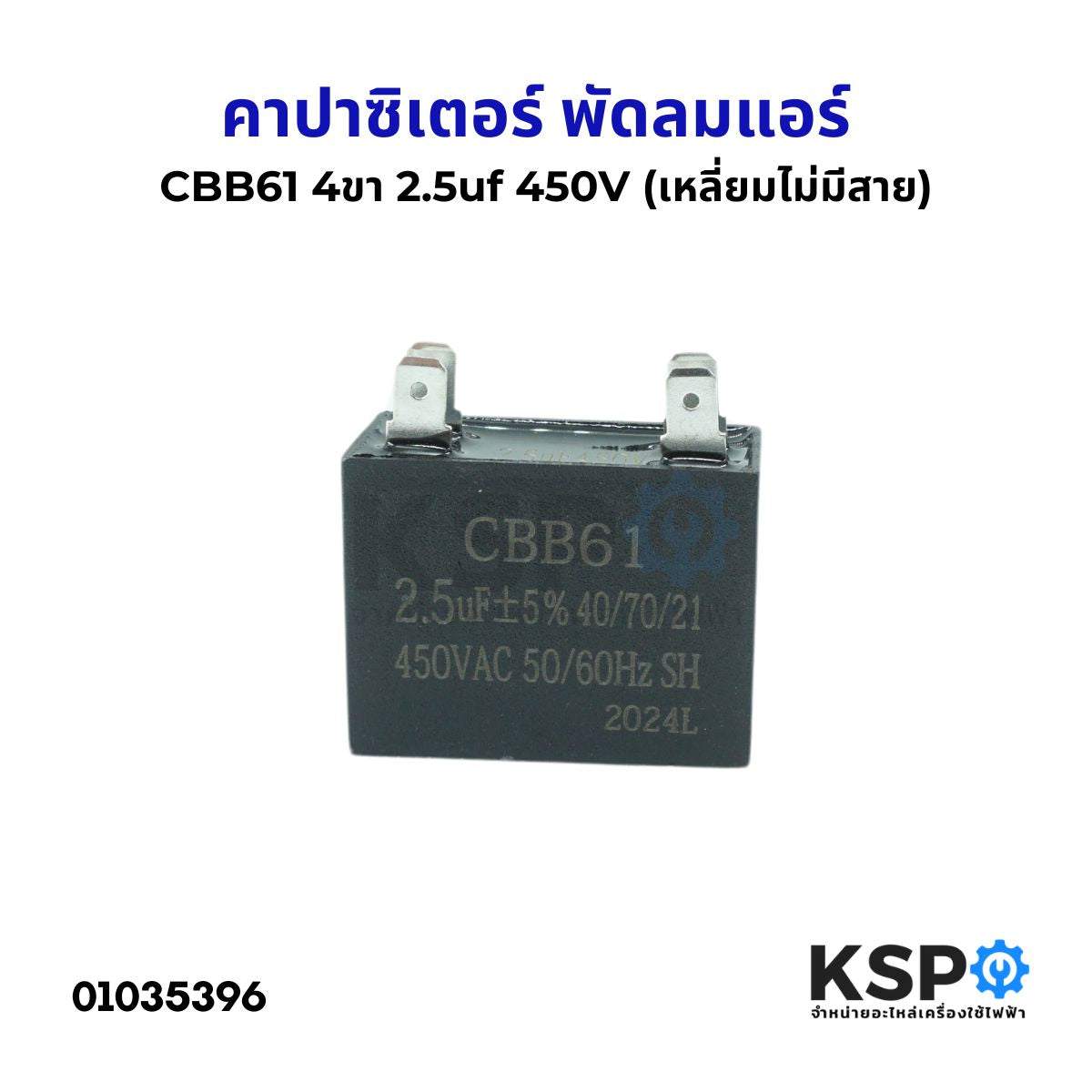 คาปาซิเตอร์ พัดลมแอร์ 2.5uF 450V 4ขา (เหลี่ยม ไม่มีสาย) อะไหล่พัดลม