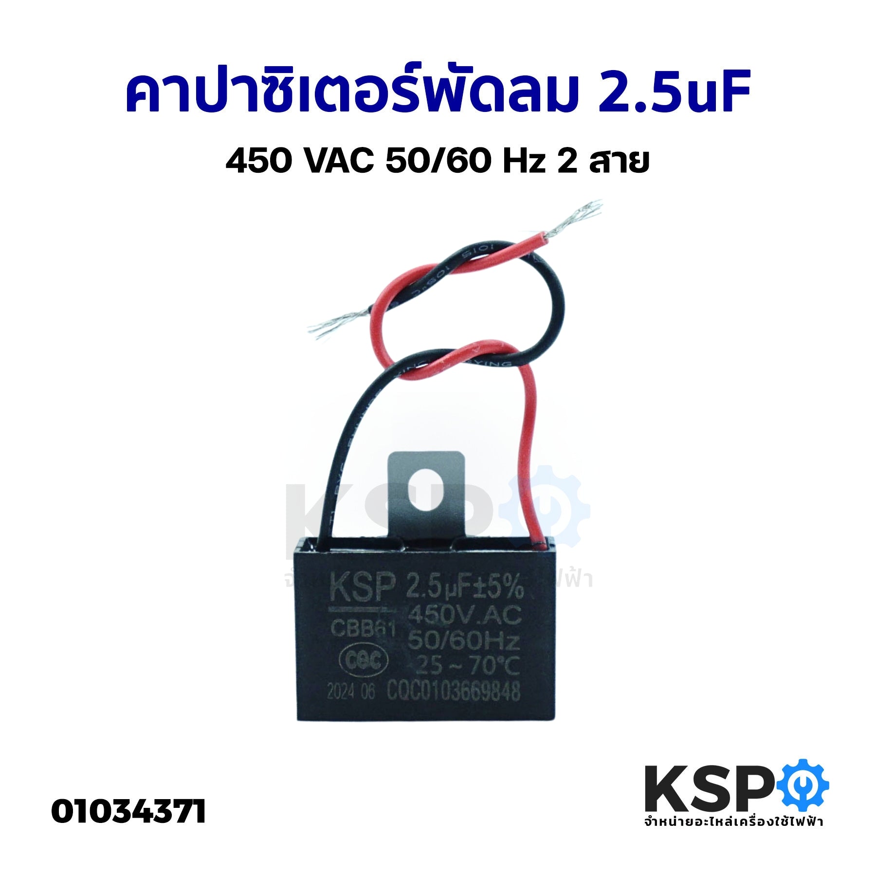 คาปาซิเตอร์ พัดลม ทั่วไป 2.5uF 450VAC 50/60Hz 2สาย อะไหล่พัดลม