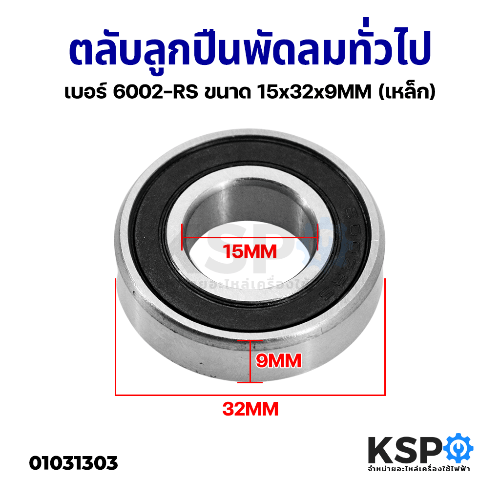 ตลับลูกปืนพัดลม ตลับลูกปืนเม็ดกลมล่องลึก ทั่วไป เบอร์ 6002-RS ขนาด 15x32x9MM (เหล็ก) อะไหล่พัดลม