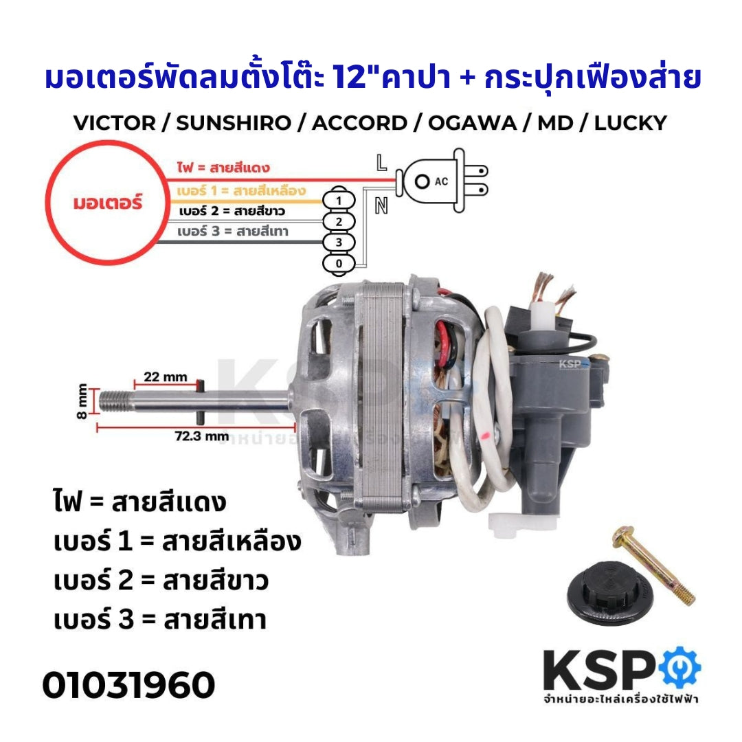 มอเตอร์พัดลมตั้งโต๊ะ 12" นิ้ว VICTOR / SUNSHIRO / ACCORD / OGAWA / MD / LUCKY พร้อม คาปา + กระปุกเฟืองส่าย อะไหล่พัดลม