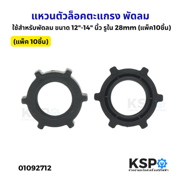 แหวนตัวล็อคตะแกรงพัดลม ขนาด 12"-14" นิ้ว รูใน 28mm (แพ็ค 10 ชิ้น) อะไหล่พัดลมคุณภาพ ใช้สำหรับยึดหรือล็อคตะแกรงด้านหน้าและด้านหลังของพัดลมให้แน่นหนา ไม่หลุดหรือสั่นคลอนระหว่างการใช้งาน เหมาะสำหรับพัดลมทั่วไปที่มีขนาด 12"-14" นิ้ว ผลิตจากวัสดุทนทาน ใช้งานง่าย คุ้มค่าใน 1 แพ็คบรรจุ 10 ชิ้น