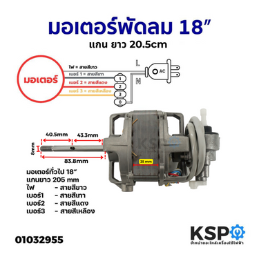 - มอเตอร์นี้เหมาะสำหรับพัดลมขนาด 18 นิ้ว