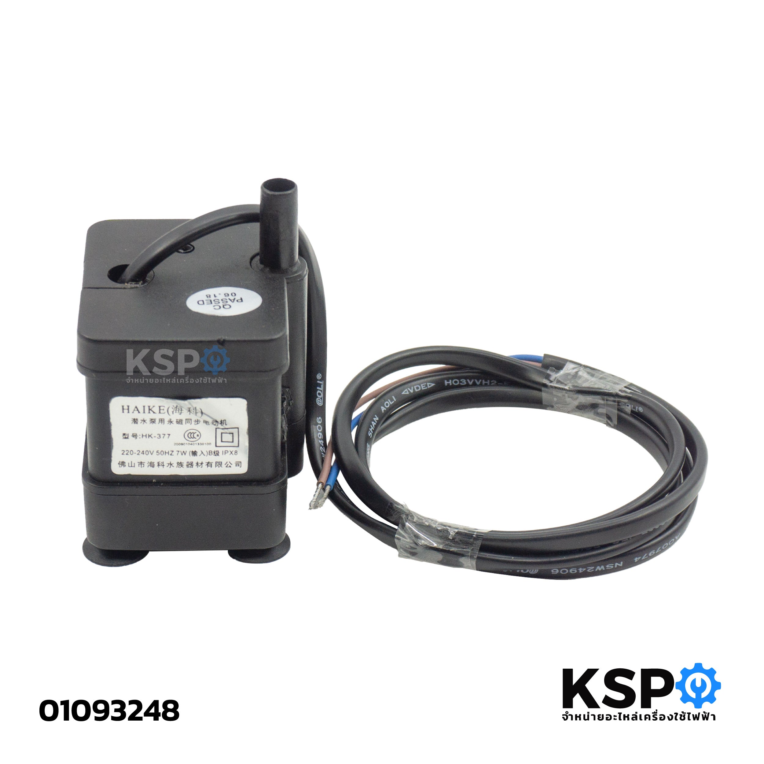 มอเตอร์ปั๊มสำหรับพัดลมไอน้ำ HAIKE รุ่น HK-377 ชนิดแช่น้ำ (Submersible) ขนาด 7W ใช้กับไฟบ้าน AC 220-240V เหมาะสำหรับพัดลมไอน้ำทั่วไปที่ต้องการระบบฉีดพ่นน้ำระบายความร้อน