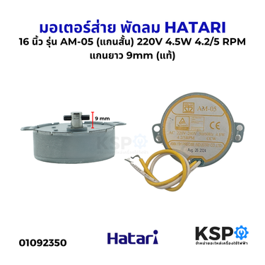 มอเตอร์ส่าย พัดลม HATARI ฮาตาริ 16 นิ้ว รุ่น AM-05 (แกนสั้น) 220V 4.5W 4.2/5 RPM แกนยาว 9mm (แท้) อะไหล่พัดลม