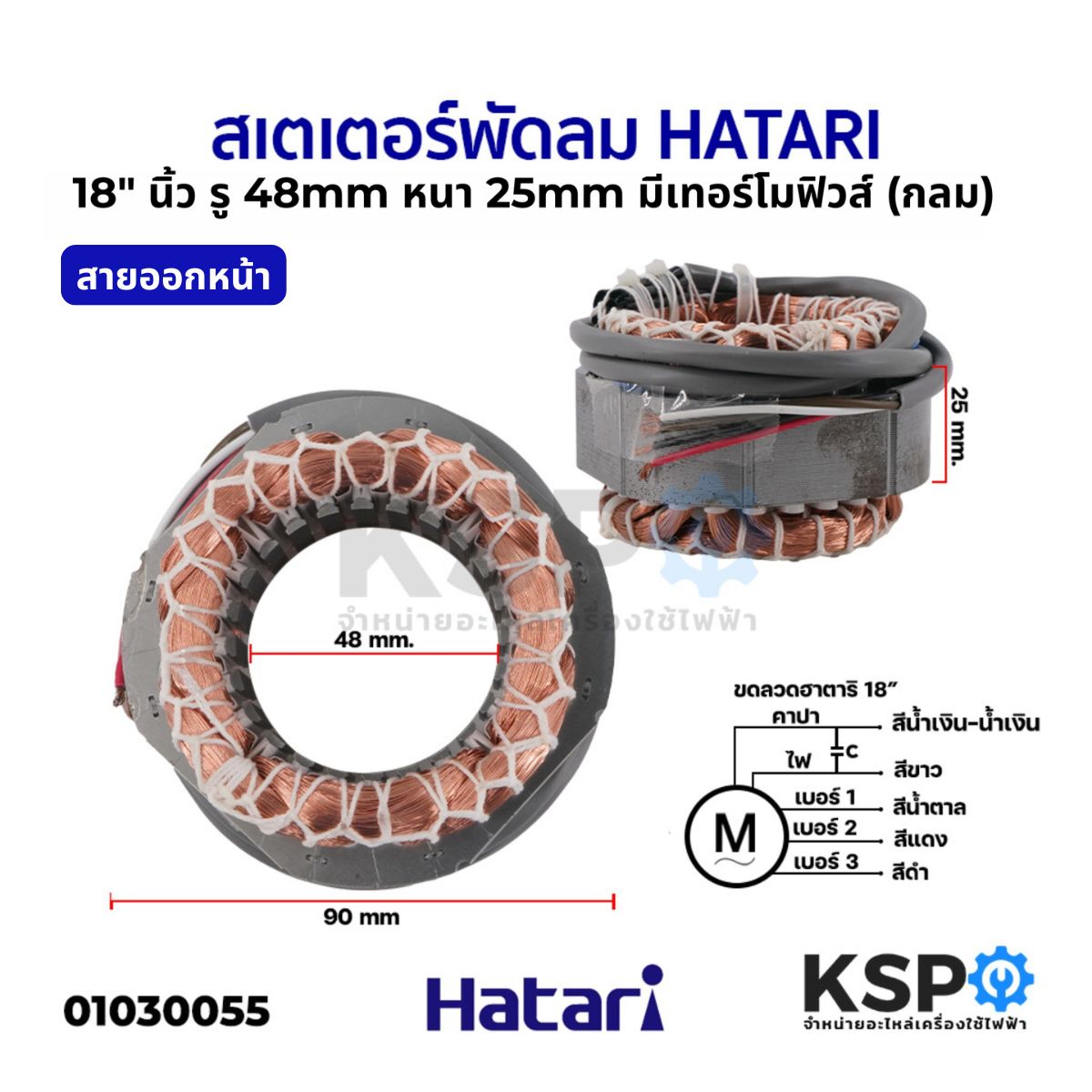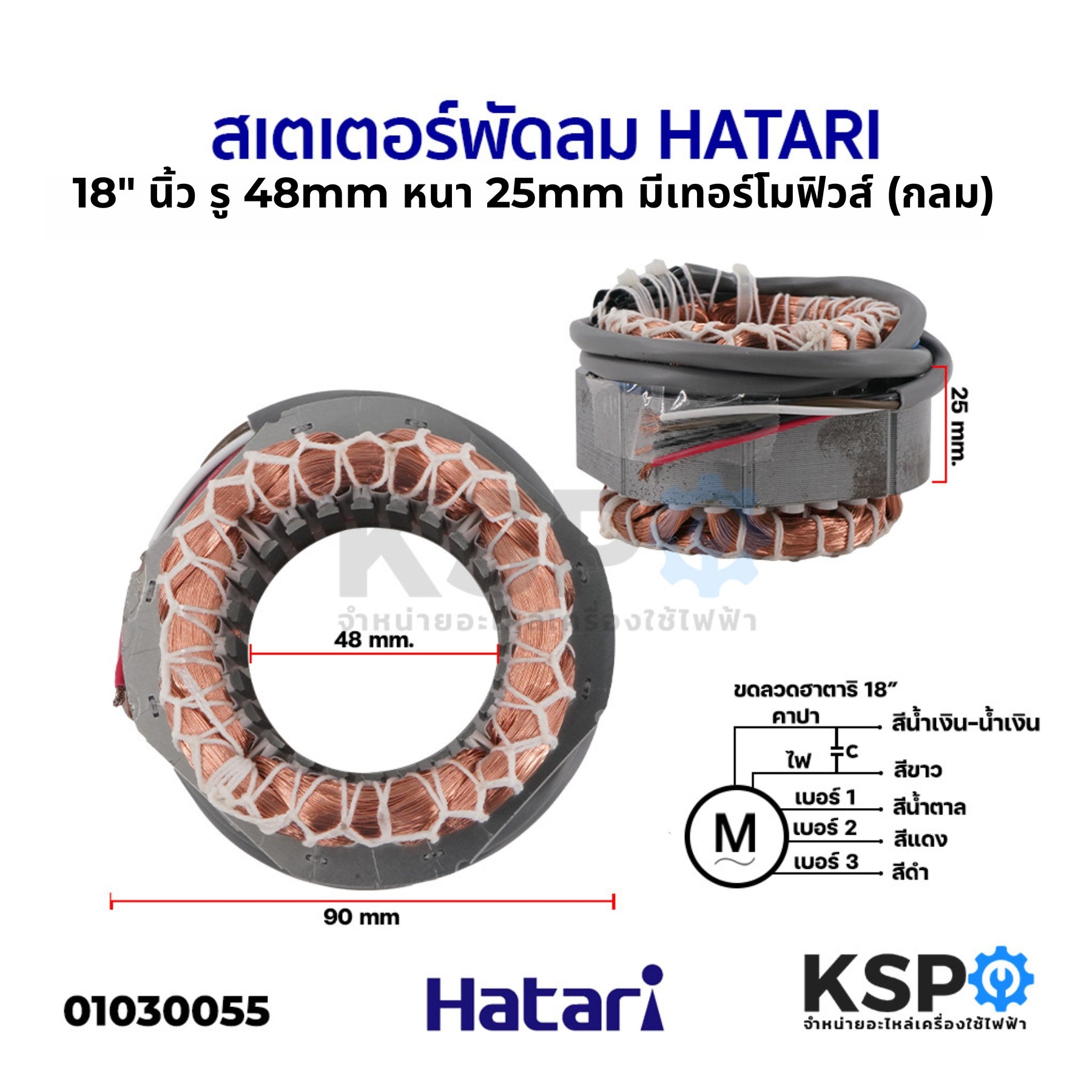 สเตเตอร์พัดลม HATARI ฮาตาริ 18" นิ้ว ตั้งพื้น ตั้งโต๊ะ รู 48MM หนา 25MM มีเทอร์โมฟิวส์ (กลม) คอยด์พัดลม อะไหล่พัดลม