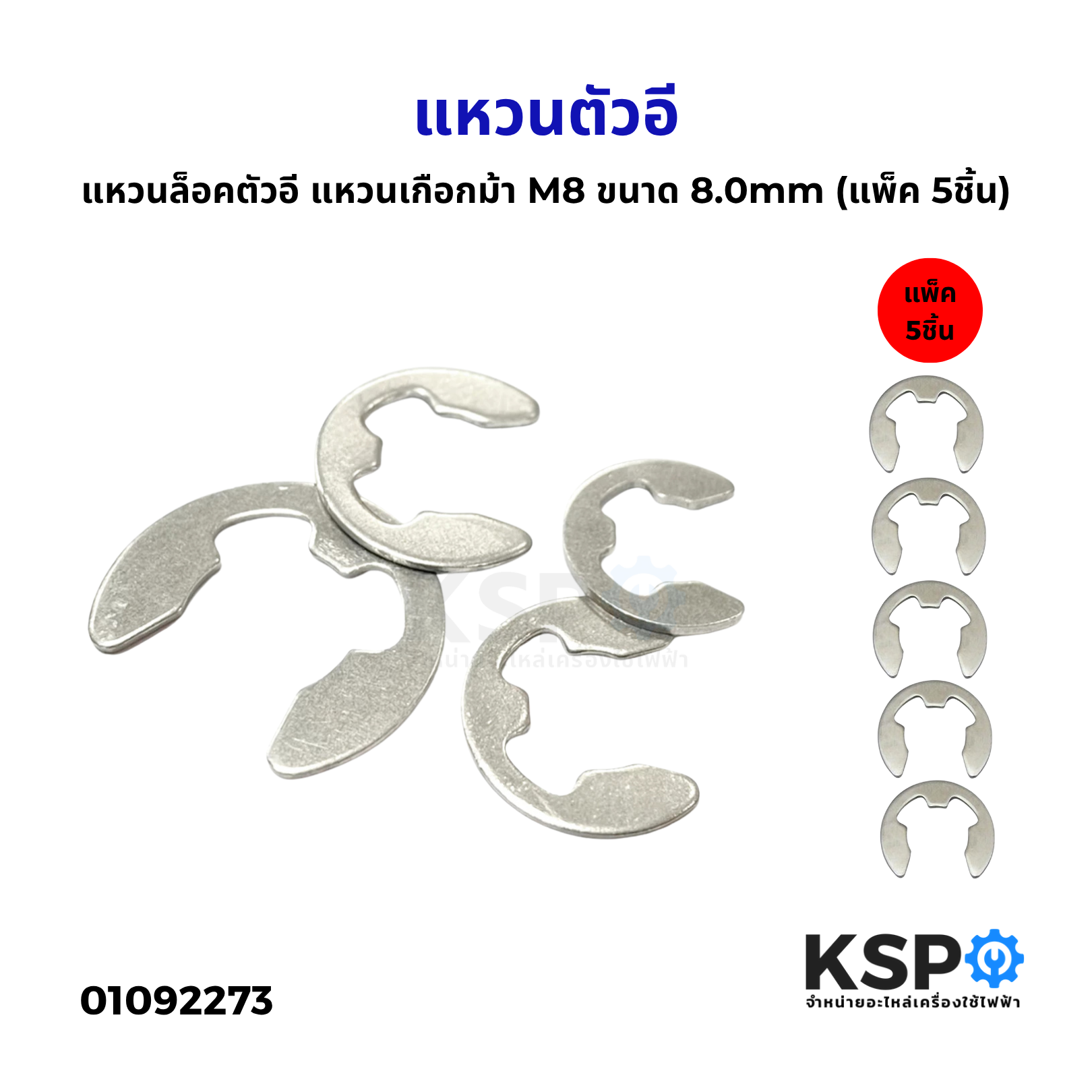 แหวนตัวอี แหวนล็อคตัวอี แหวนเกือกม้า M8 ขนาด 8.0mm (แพ็ค 5ชิ้น) อะไหล่พัดลม