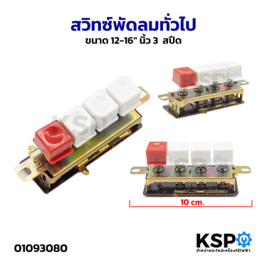 สวิทซ์พัดลม ยี่ห้อทั่วไป สำหรับพัดลมขนาด 12–16 นิ้ว รองรับการปรับความแรงลม 3 ระดับ ใช้เปลี่ยนแทนสวิทซ์เดิมที่เสียหรือชำรุด
