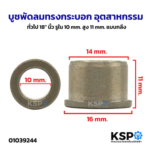 บูชพัดลม ทรงกระบอก อุตสาหกรรม ทั่วไป 18" นิ้ว รูใน 10mm สูง 11mm แบบกลึง อะไหล่พัดลม
