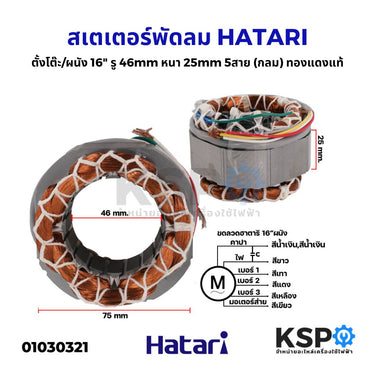 สเตเตอร์พัดลม ตั้งโต๊ะ/ผนัง 16" Hatari ฮาตาริ (กลม) รู46mm หนา 25mm 5สาย ทองแดงแท้ อะไหล่พัดลม