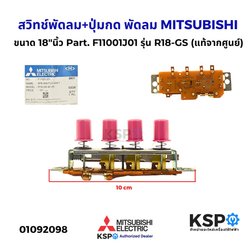 สวิทช์พัดลม+ปุ่มกด พัดลม MITSUBISHI มิตซูบิชิ ขนาด 12"นิ้ว Part. F11001N02 รุ่น D12-GS (แท้จากศูนย์) อะไหล่พัดลม