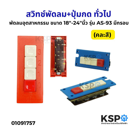 สวิทช์พัดลม+ปุ่มกด พัดลมอุตสาหกรรม ขนาด 18"-24"นิ้ว มีกรอบ รุ่น AS-93 อะไหล่พัดลม