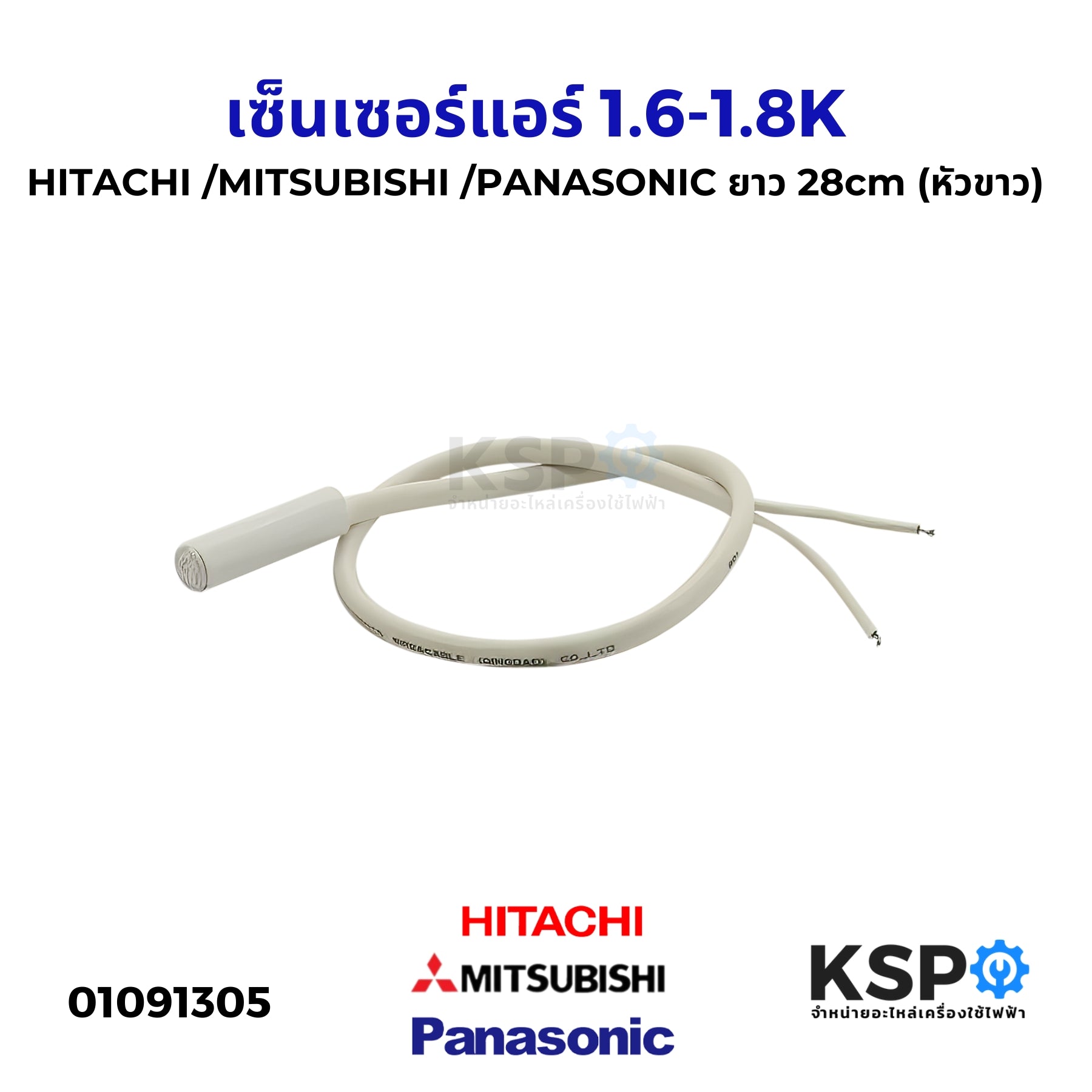 เซ็นเซอร์แอร์ เซ็นเซอร์อุณหภูมิ Hitachi ฮิตาชิ, MITSUBISHI มิตซูบิชิ, PANASONIC พานาโซนิค ทั่วไป 1.6-1.8K (หัวขาว) ยาว 28cm อะไหล่แอร์