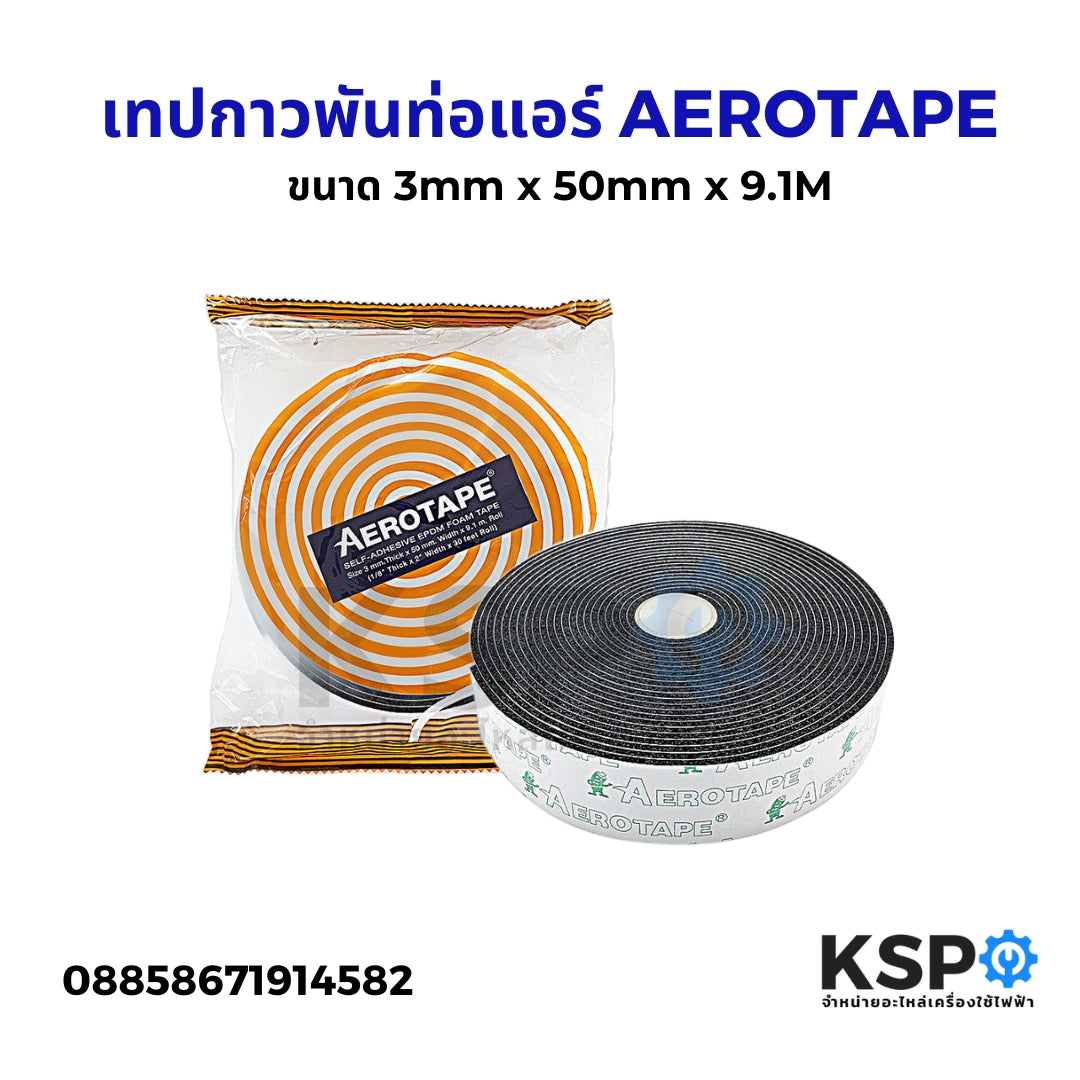 เทปกาวพันท่อแอร์ AEROTAPE เป็นเทปกาวที่ออกแบบมาเพื่อการพันท่อแอร์อย่างมีประสิทธิภาพ ผลิตจากสารอีลาสโตเมอร์คุณภาพสูง และมีความหนา 3 mm กว้าง 50 mm และความยาว 9.1 เมตร ซึ่งเคลือบด้วยกาวสำเร็จรูปจากโรงงาน ทำให้ใช้งานง่ายและติดทน มีคุณสมบัติในการป้องกันการควบแน่น และช่วยประหยัดพลังงานได้อย่างดีเยี่ยม