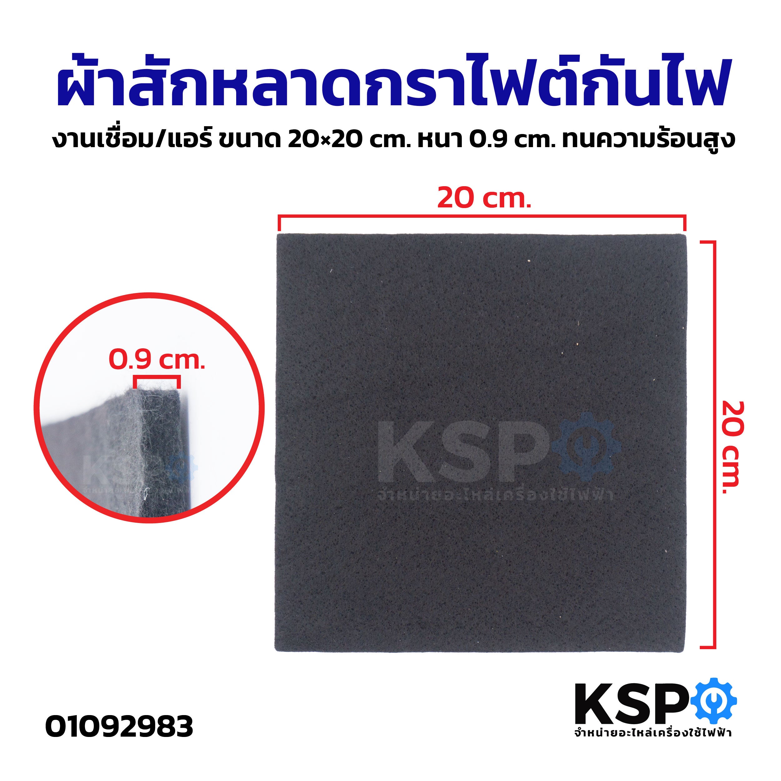 ผ้าสักหลาดกราไฟต์กันไฟ ขนาด 20×20 ซม. หนา 0.9 ซม. ทนความร้อนสูง เหมาะสำหรับใช้งานเชื่อมหรือซ่อมแซมแอร์ ใช้รองรับเปลวไฟหรือสะเก็ดไฟป้องกันความเสียหายต่อพื้นผิว