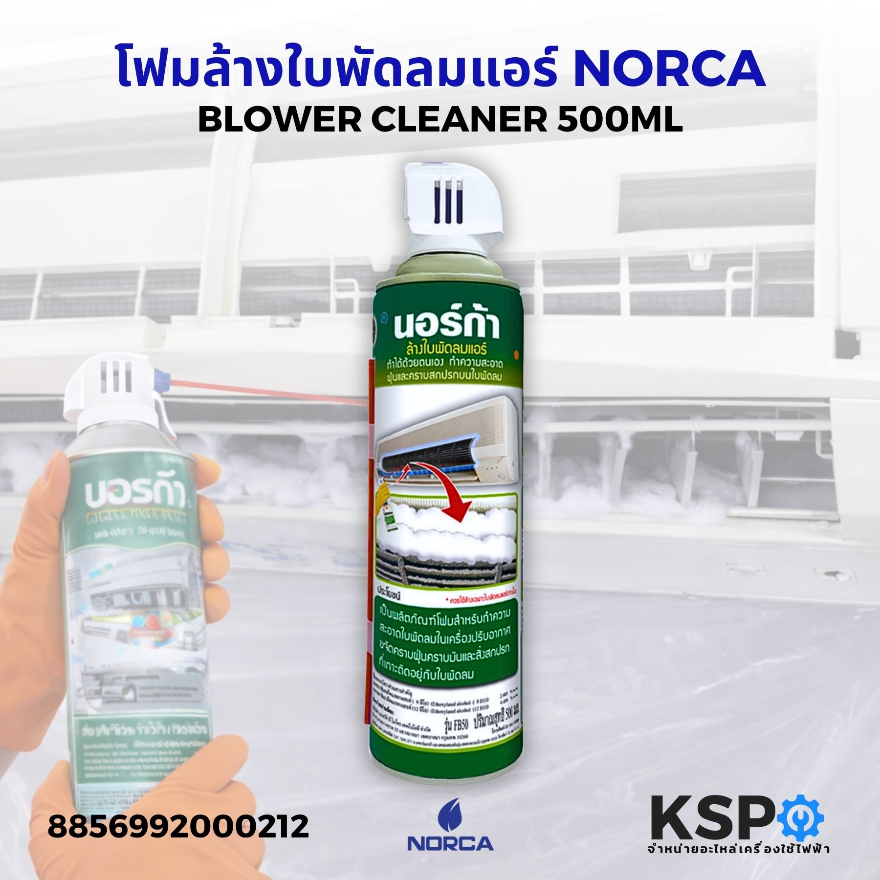 โฟมล้างแอร์ กระบอกฉีดน้ำ แผงคอลย์เย็นแอร์ NORCA BLOWER CLEANER, NORCA FOAM CLEANER โฟมล้างแอร์ ผลิตภัณฑ์ทำความสะอาดเครื่องปรับอากาศที่มีประสิทธิภาพสูง ช่วยล้างคราบสกปรก ฝุ่นละออง เชื้อราและแบคทีเรียที่สะสมในแผงคอลย์เย็นและพัดลมแอร์ได้อย่างหมดจด ทำให้แอร์สะอาด เย็นเร็วขึ้น ประหยัดไฟ ไม่มีกลิ่นอับ ลดการเกิดโรคภูมิแพ้ เหมาะสำหรับการทำความสะอาดแอร์เองที่บ้าน ใช้งานง่าย ปลอดภัย