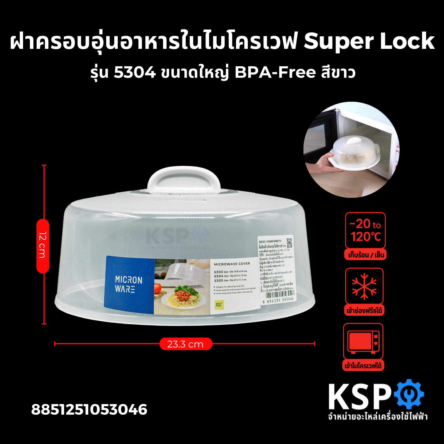ฝาครอบอุ่นอาหารในไมโครเวฟ Super Lock รุ่น 5304 ขนาดใหญ่ BPA-Free สีขาว อุปกรณ์ครัวเรือน