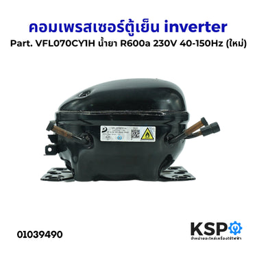 คอมตู้เย็น คอมเพรสเซอร์ตู้เย็น ทั่วไป inverter Part. VFL070CY1H น้ำยา R600a 230V 40-150Hz (ใหม่) อะไหล่ตู้เย็น
