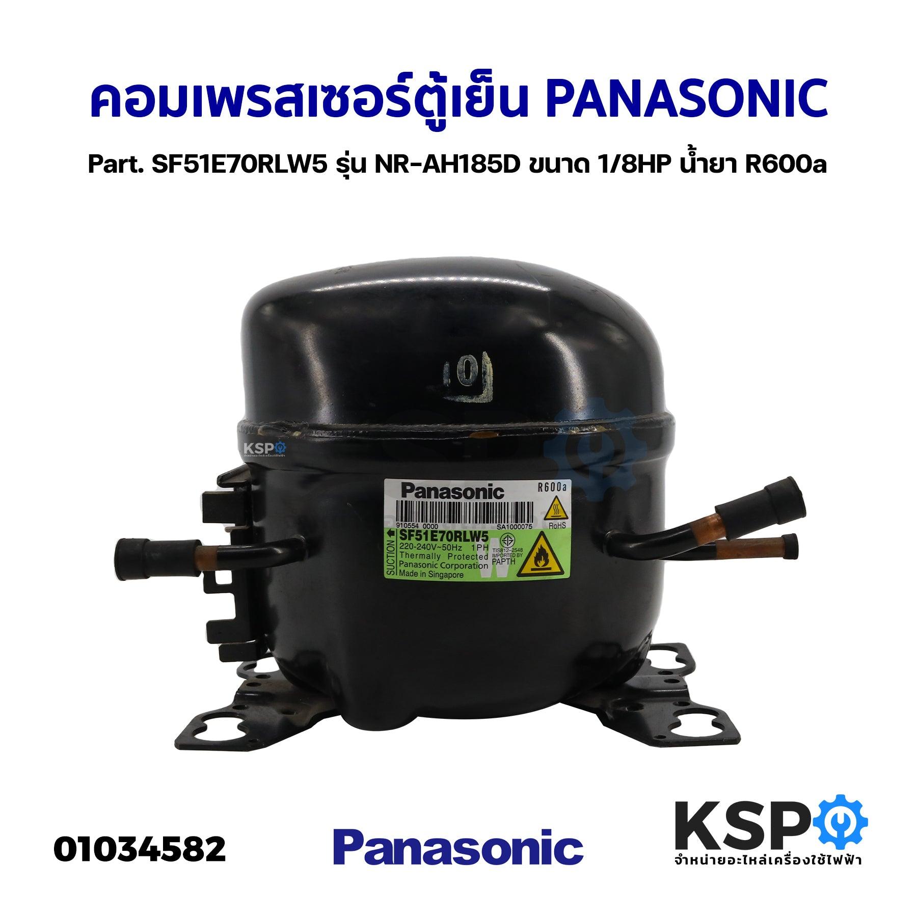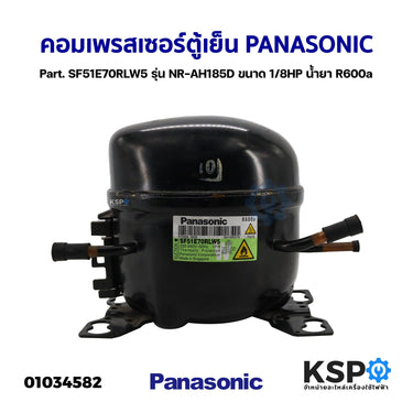 คอมเพรสเซอร์ ตู้เย็น PANASONIC พานาโซนิค Part. SF51E70RLW5 รุ่น NR-AH185D ขนาด 1/8HP น้ำยา R600a อะไหล่ตู้เย็น