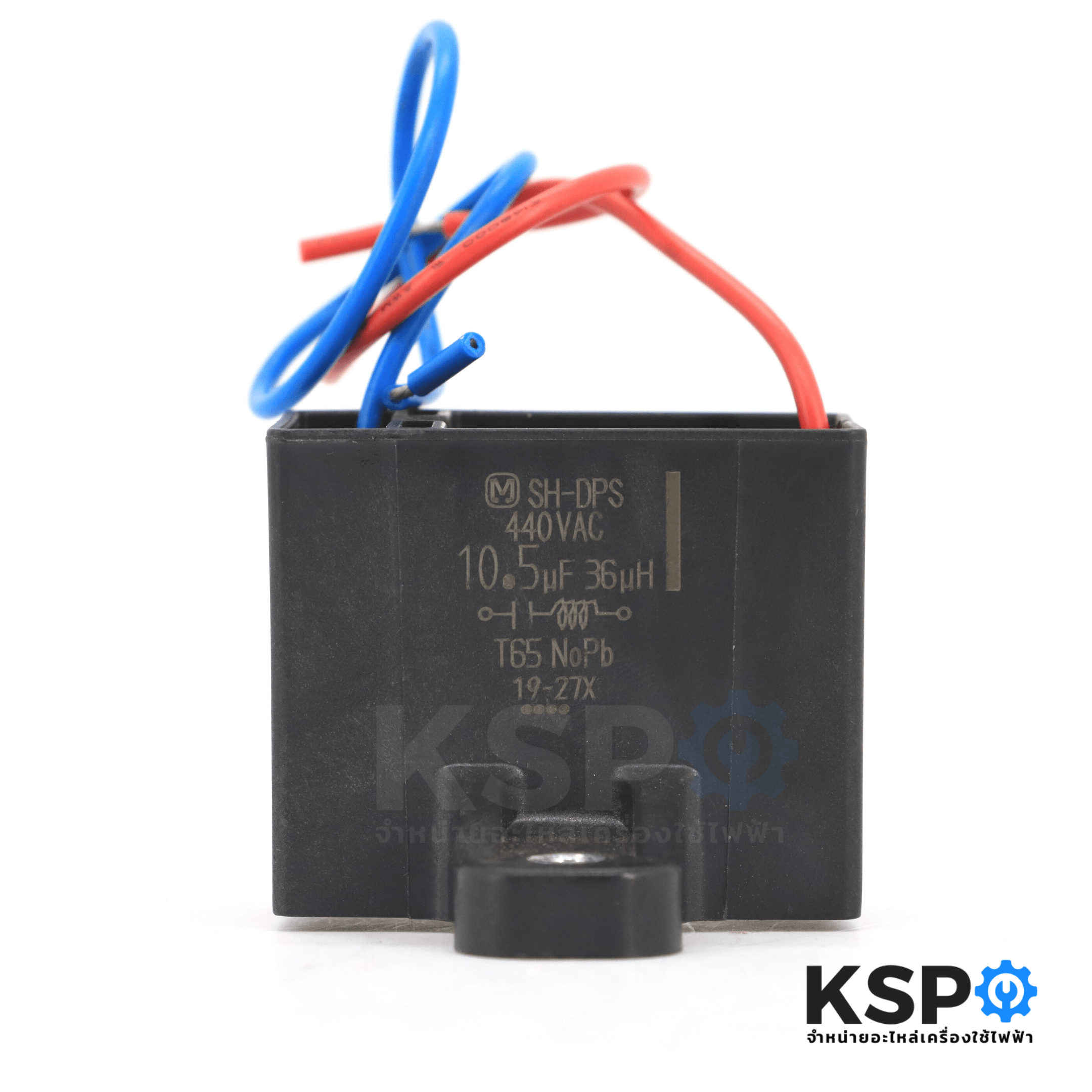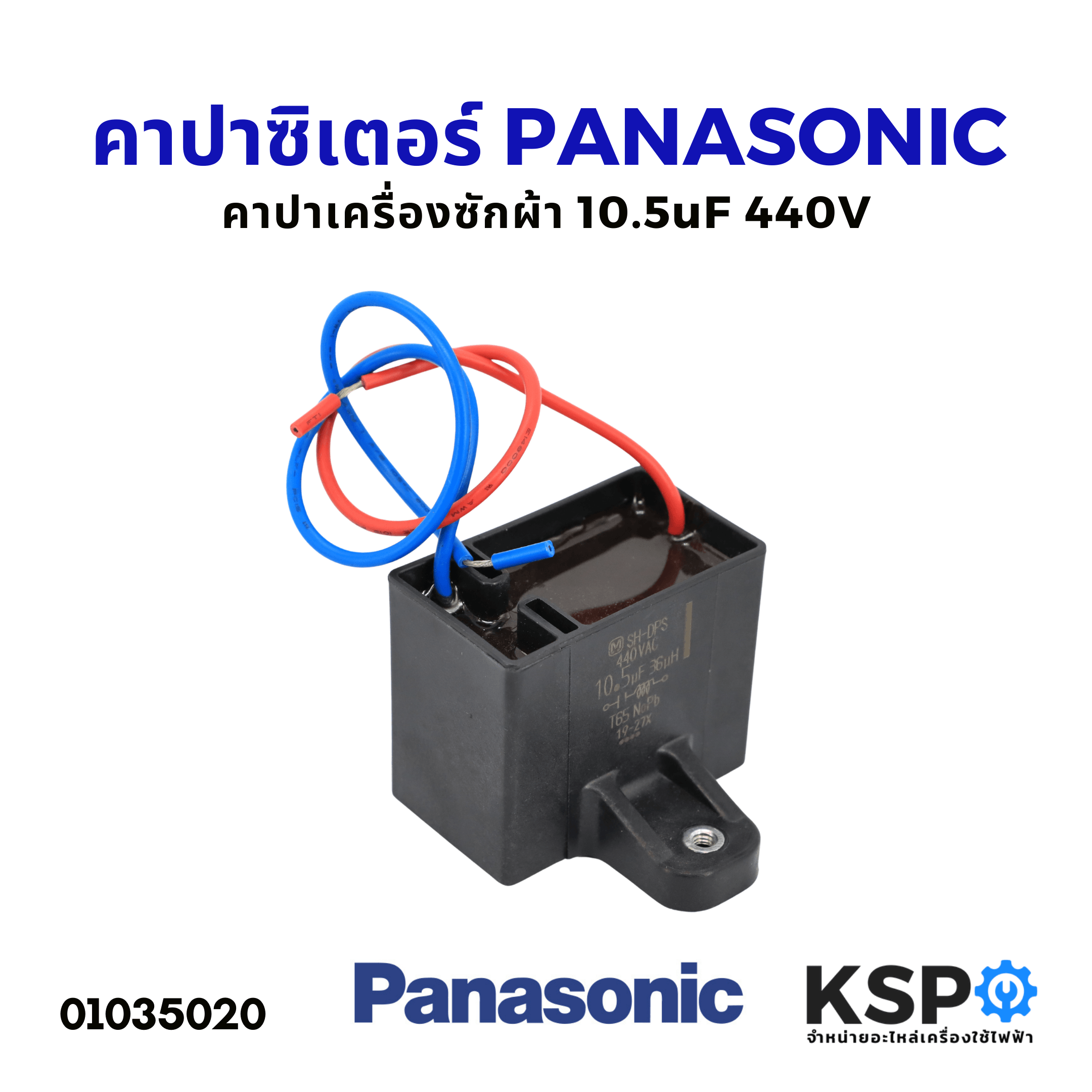 คาปาซิเตอร์ เครื่องซักผ้า PANASONIC พานาโซนิค 10.5uF 440V ดำเหลี่ยม มีสาย (แท้) อะไหล่เครื่องซักผ้า
