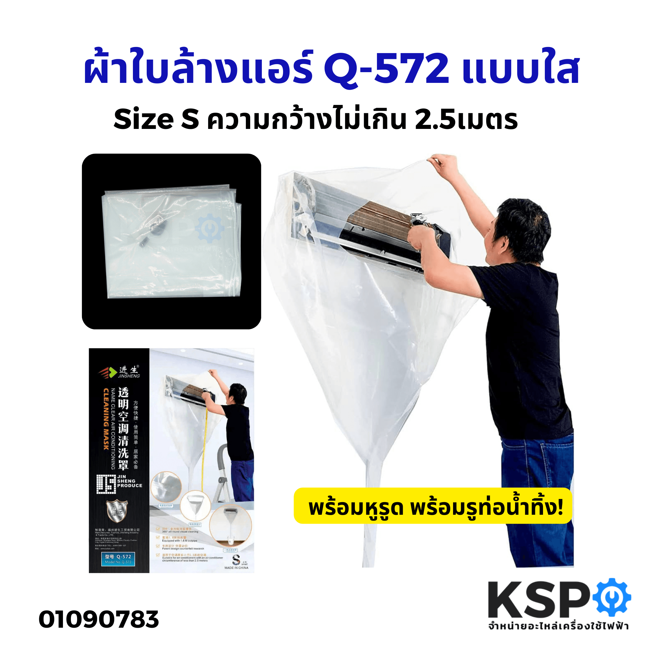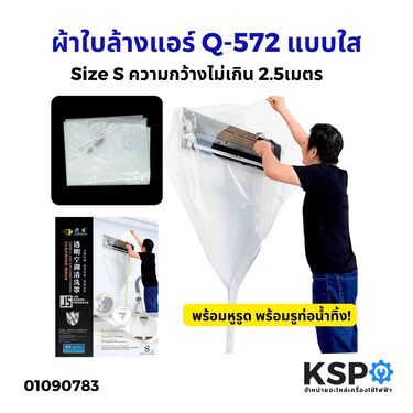 ผ้าใบล้างแอร์ ผ้าล้างแอร์ รุ่น Q-572 แบบใส พร้อมรูท่อน้ำทิ้ง สำหรับ แอร์ติดผนัง ขนาดเล็ก (ความกว้างแอร์ไม่เกิน 2.5เมตร) อะไหล่แอร์