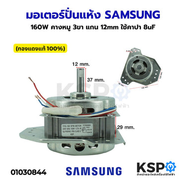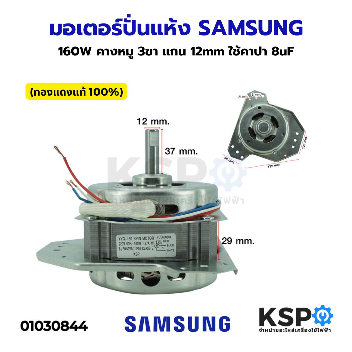 มอเตอร์ปั่นแห้ง เครื่องซักผ้า SAMSUNG ซัมซุง 160W คางหมู 3ขา แกน 12mm ใช้คาปา 8 uF (ทองแดงแท้) อะไหล่เครื่องซักผ้า