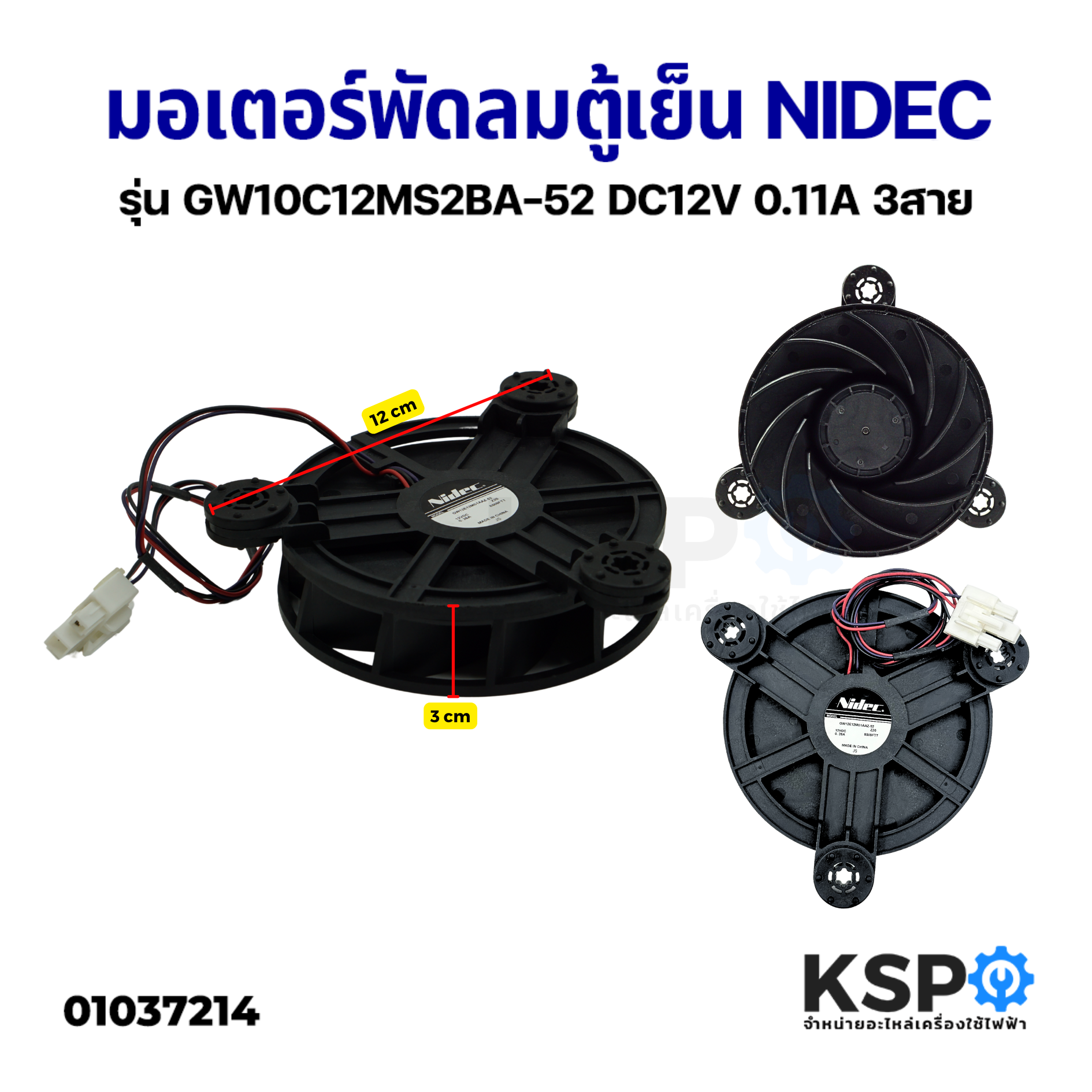 มอเตอร์พัดลมตู้เย็น NIDEC รุ่น GW10C12MS2BA-52 12V DC 0.11A 3สาย ใช้สำหรับ HAIER อะไหล่ตู้เย็น