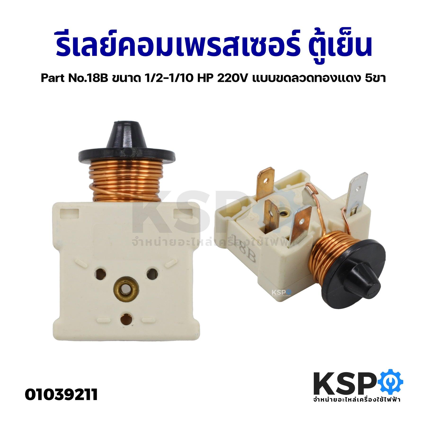 รีเลย์คอมเพรสเซอร์ ตู้เย็น ตู้เเช่ แบบขดลวดทองแดง 5ขา Part No.18B ขนาด 1/2-1/10 HP 220V 5ขา อะไหล่ตู้เย็น