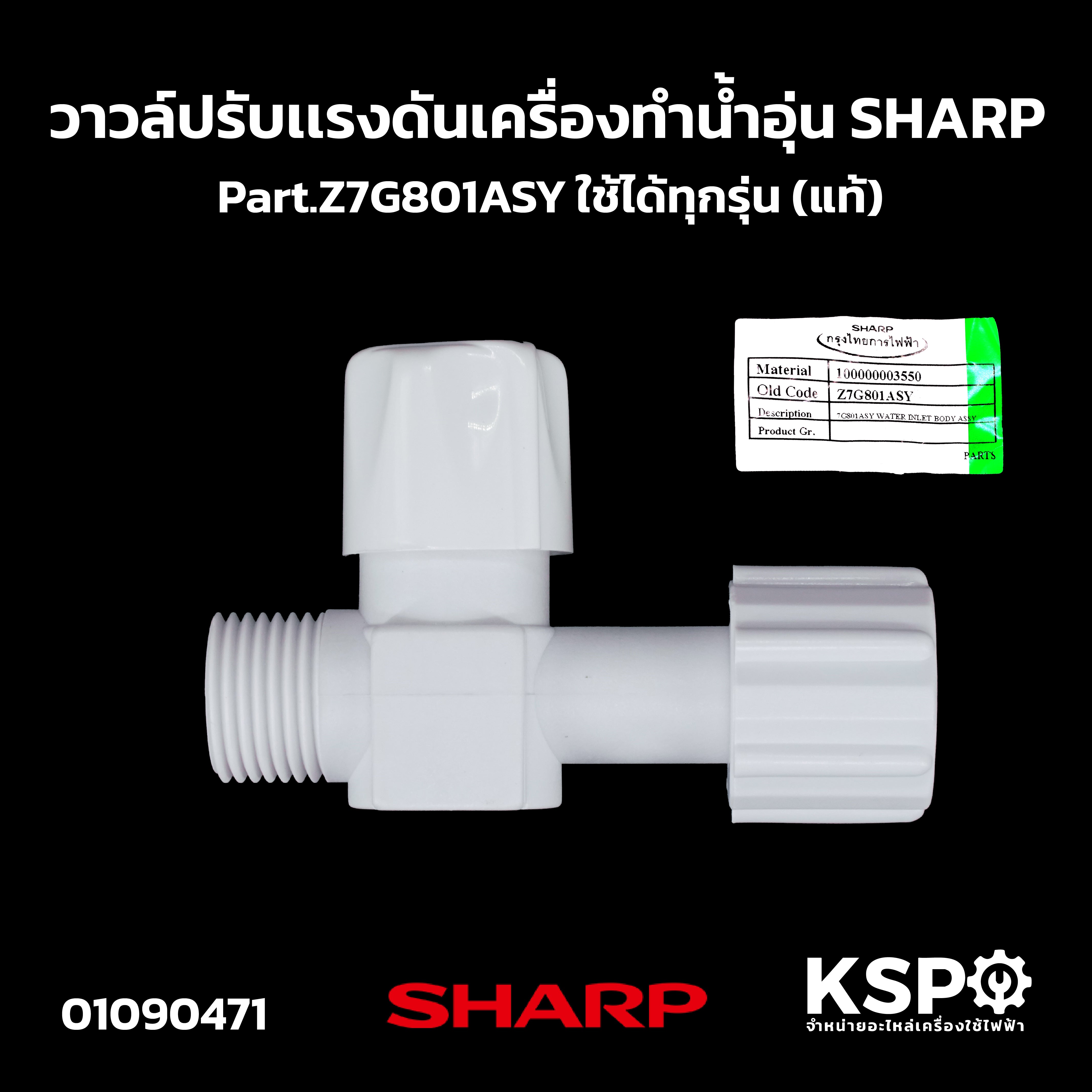 วาล์วปรับแรงดันน้ำ เครื่องทำน้ำอุ่น SHARP ชาร์ป Part. Z7G801ASY ใช้ได้ทุกรุ่น (แท้) อะไหล่เครื่องทำน้ำอุ่น