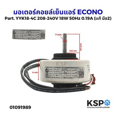 มอเตอร์คอยล์เย็นแอร์ ECONO Part. YYK18-4C 208-240V 18W 50Hz 0.19A (เเท้ มือ2) อะไหล่แอร์