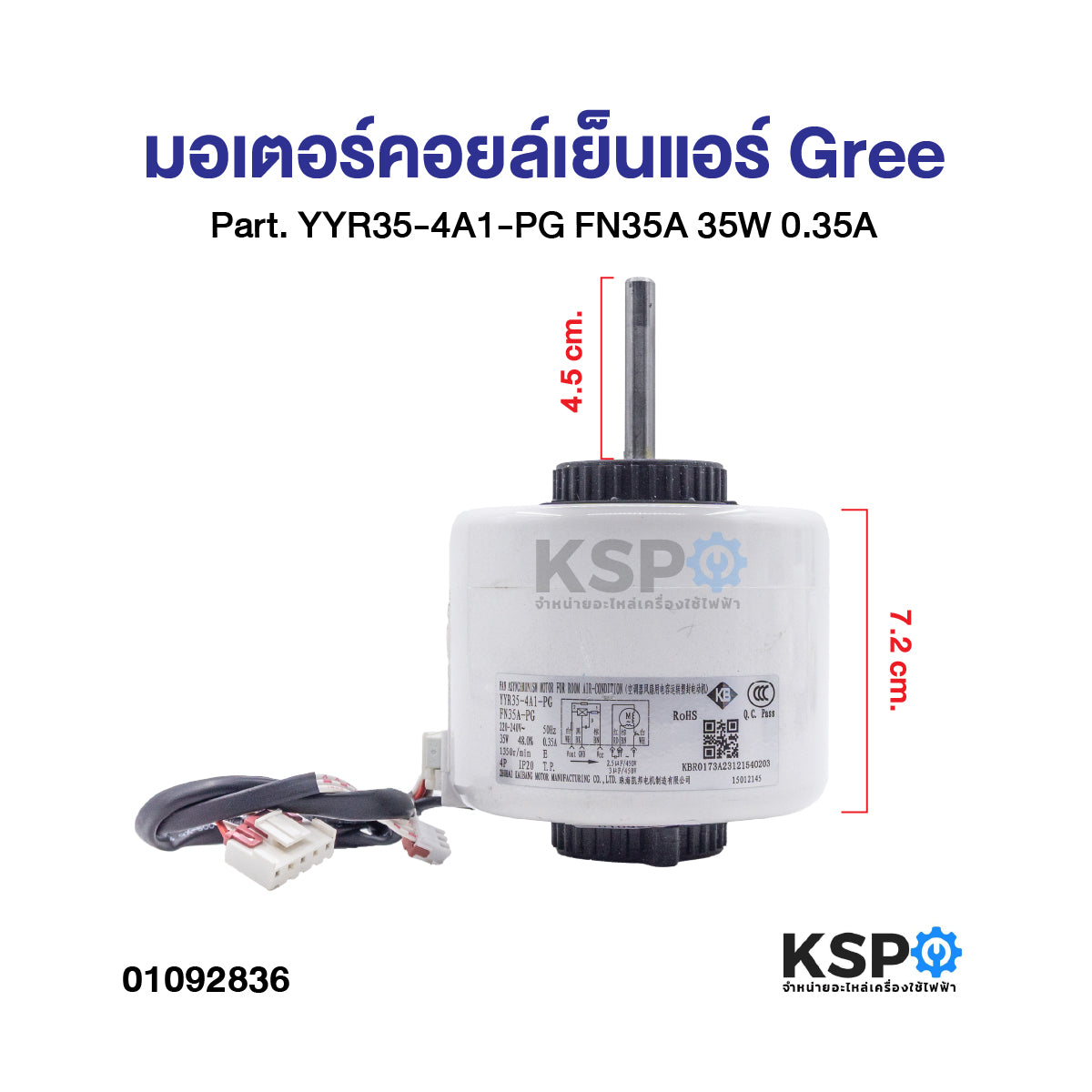 มอเตอร์แอร์ มอเตอร์คอยล์เย็นแอร์ Gree Part. YYR35-4A1-PG FN35A 35W 0.35A อะไหล่แอร์