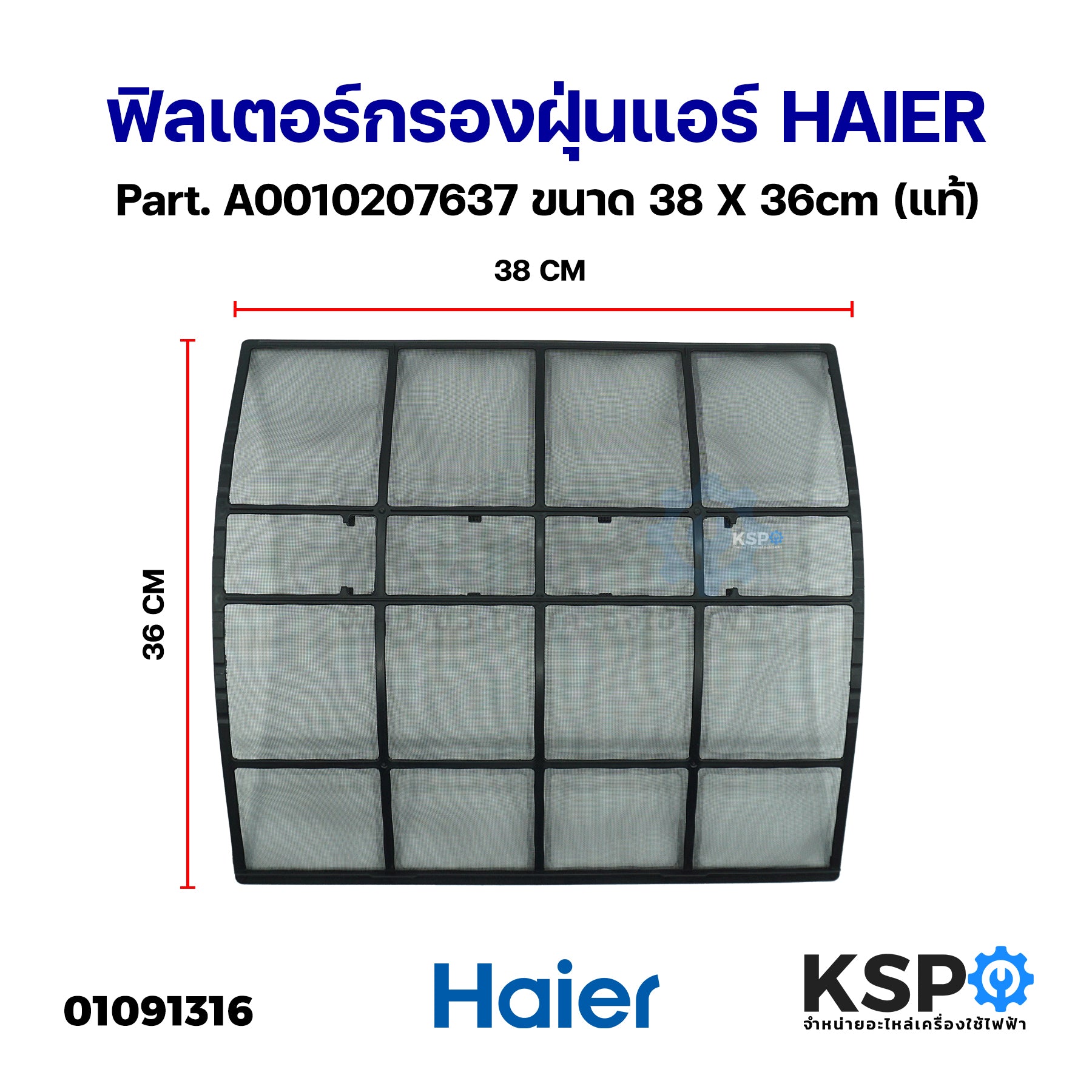 ฟิลเตอร์กรองฝุ่นแอร์ ฟิลเตอร์แอร์ แผ่นกรองฝุ่นแอร์ HAIER ไฮเออร์ Part. A0010207637 ขนาด 38 X 36cm (แท้) อะไหล่แอร์