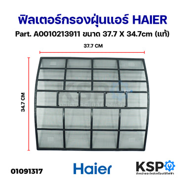 ฟิลเตอร์กรองฝุ่นแอร์ ฟิลเตอร์แอร์ แผ่นกรองฝุ่นแอร์ HAIER ไฮเออร์ Part. A0010213911 ขนาด 37.7 X 34.7cm (แท้) อะไหล่แอร์