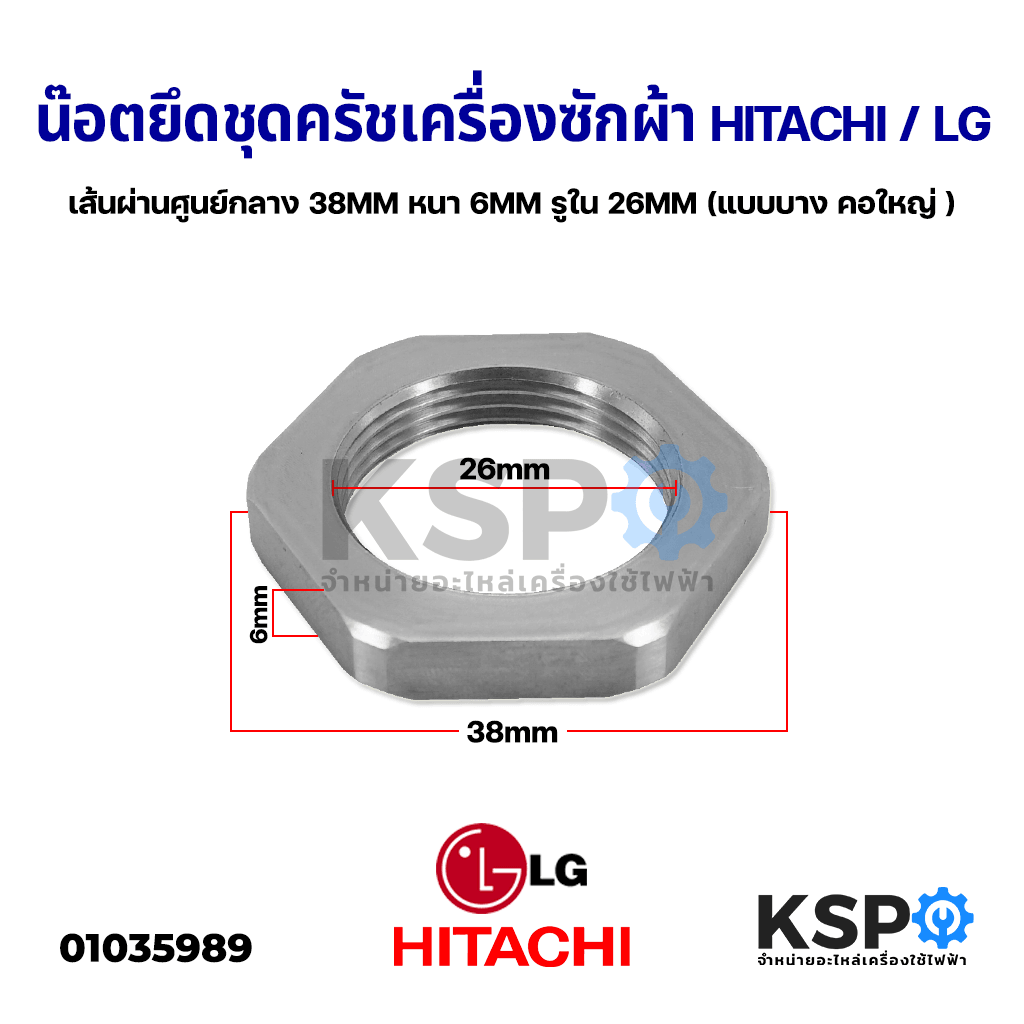 น๊อตยึดชุดครัช เครื่องซักผ้า HITACHI ฮิตาชิ LG แอลจี เส้นผ่านศูนย์กลาง 38MM หนา 6MM รูใน 26MM (แบบบาง คอใหญ่ ) อะไหล่เครื่องซักผ้า