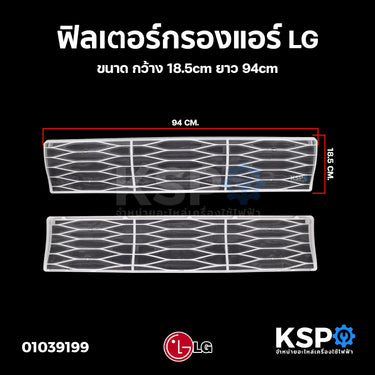 ฟิลเตอร์ แผ่นกรองฝุ่นแอร์ LG แอลจี ขนาด กว้าง 18.5cm ยาว 94cm อะไหล่แอร์