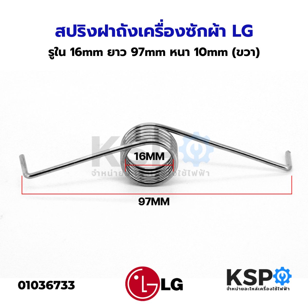 สปริงฝาถังเครื่องซักผ้า LG แอลจี รูใน 16mm ยาว 97mm หนา 10mm (ขวา) อะไหล่เครื่องซักผ้า