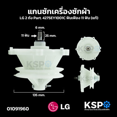 แกนซักเครื่องซักผ้า LG แอลจี สำหรับเครื่องซักผ้าแบบ 2 ถัง รุ่น 4275EY1001C ของแท้จากศูนย์ มาพร้อมฟันเฟือง 11 ฟัน ใช้ได้กับรุ่นที่ระบุด้านล่าง