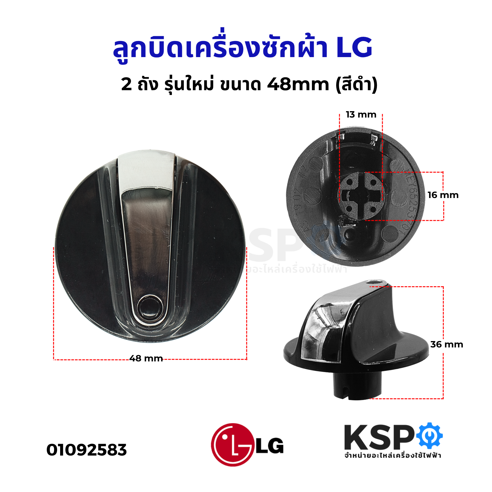 ลูกบิดเครื่องซักผ้าสำหรับเครื่องซักผ้า 2 ถัง LG (แอลจี) รุ่นใหม่ สีดำ ดีไซน์สวย แข็งแรง ทนความร้อน ใช้งานง่ายด้วยระบบสลักสวมแบบกากบาท รองรับรุ่นยอดนิยมหลายรุ่น เหมาะสำหรับการเปลี่ยนอะไหล่ที่ชำรุด เพื่อให้เครื่องซักผ้ากลับมาใช้งานได้อย่างราบรื่น