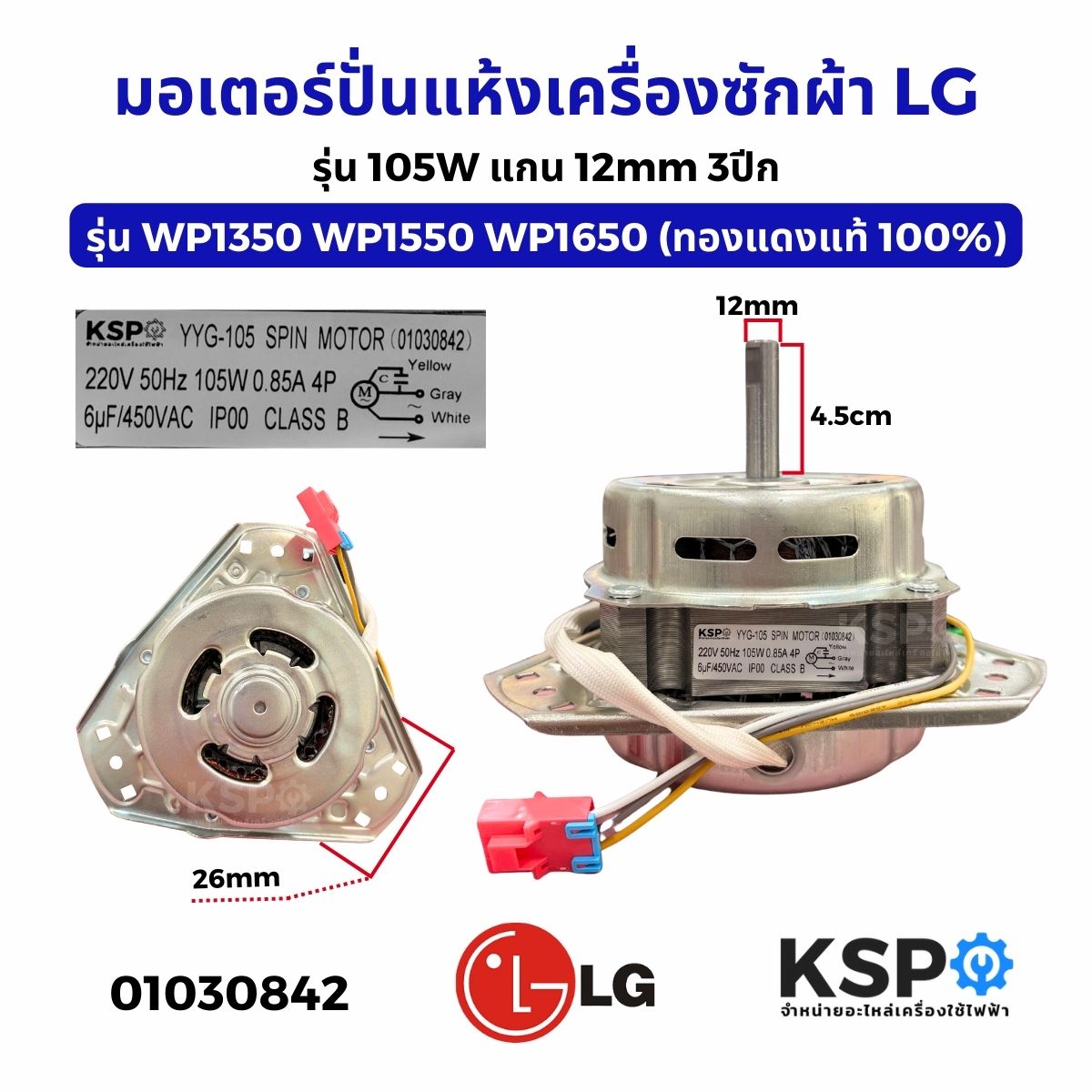 มอเตอร์ปั่นแห้ง เครื่องซักผ้า LG รุ่น 105W 3ปีก แกน 12mm รุ่น WP1350 WP1550 WP1650 (ทองแดงแท้) รุ่นเก่า อะไหล่เครื่องซักผ้า