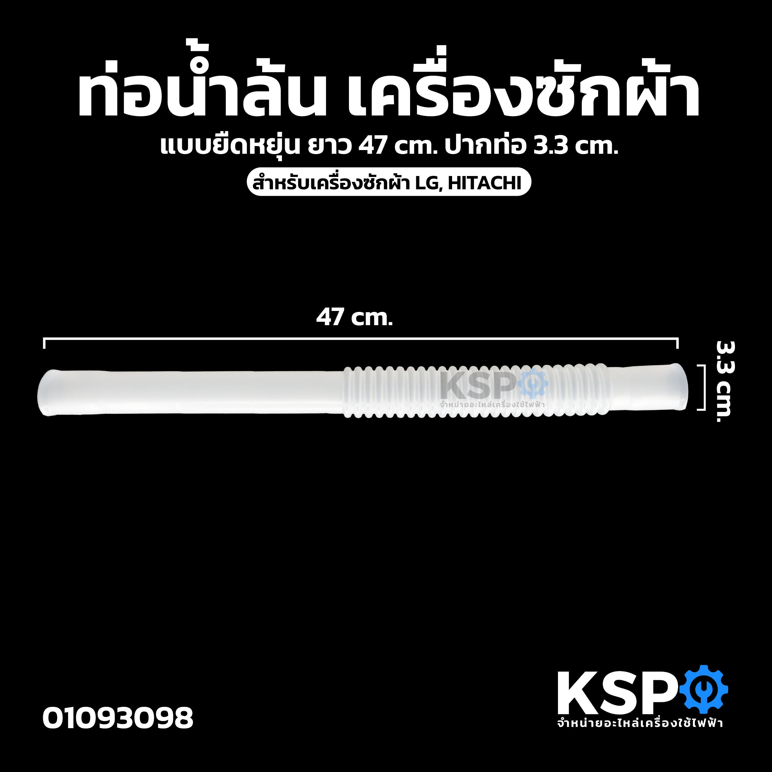 ท่อน้ำล้นเครื่องซักผ้า สำหรับ LG และ HITACHI แบบยืดหยุ่น ความยาว 47 ซม. ปากท่อขนาด 3.3 ซม. ใช้เชื่อมต่อระบายน้ำส่วนเกินจากถังซัก เพิ่มความปลอดภัยและป้องกันน้ำล้น