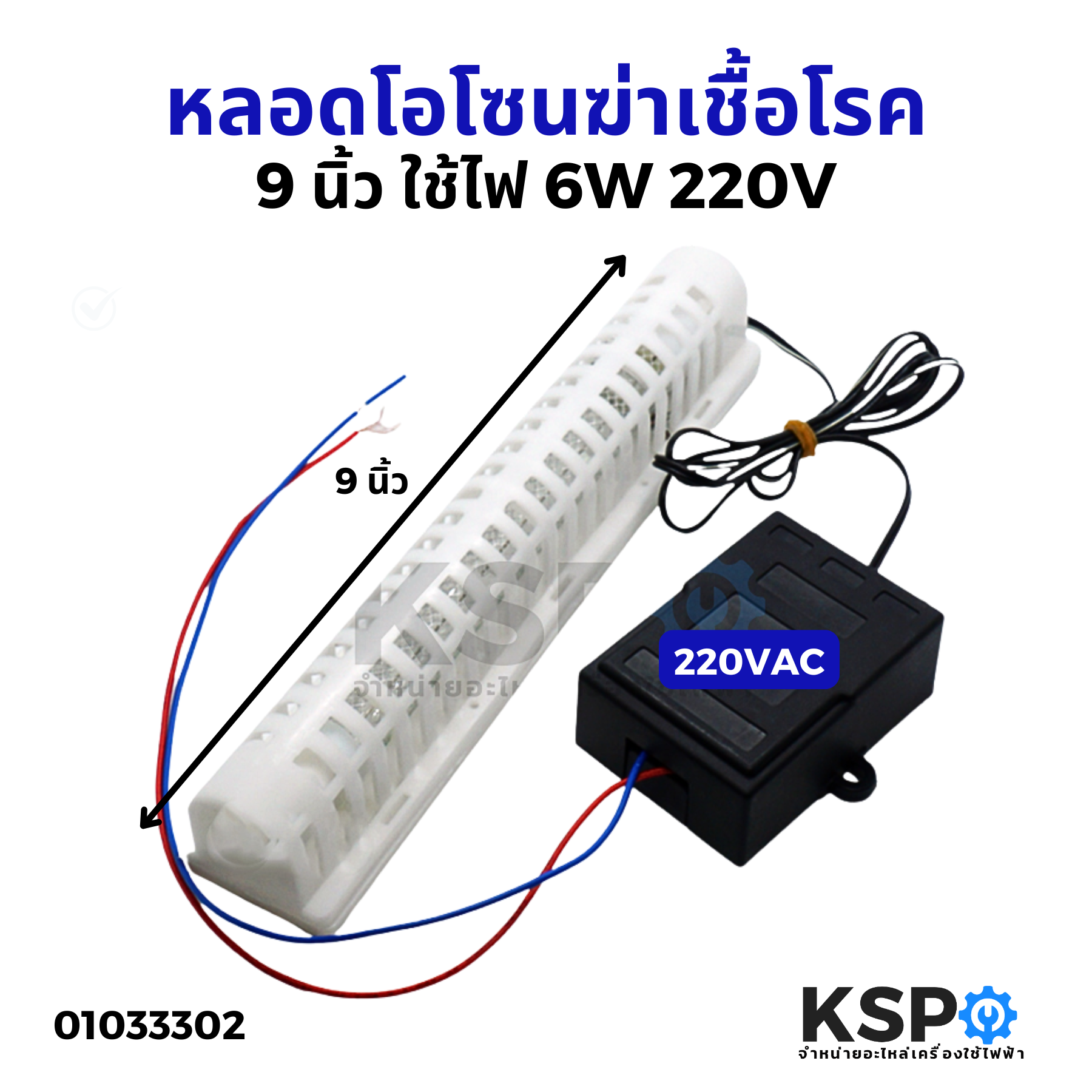หลอดโอโซน 9 นิ้ว Ozone Generator 6W 220V เครื่องผลิตโอโซน 100-150 mg/h ฆ่าเชื้อโรค