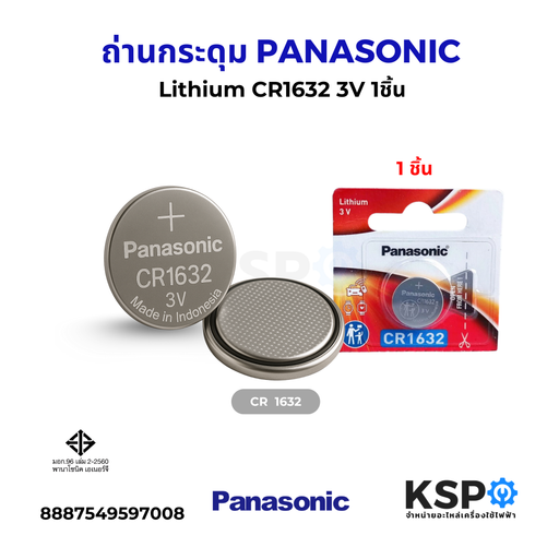 ถ่านกระดุม PANASONIC พานาโซนิค Lithium รุ่น CR1632 ขนาด 3V สำหรับใช้งานกับอุปกรณ์อิเล็กทรอนิกส์ต่างๆ เช่น นาฬิกา เครื่องคิดเลข รีโมท และอุปกรณ์ขนาด...