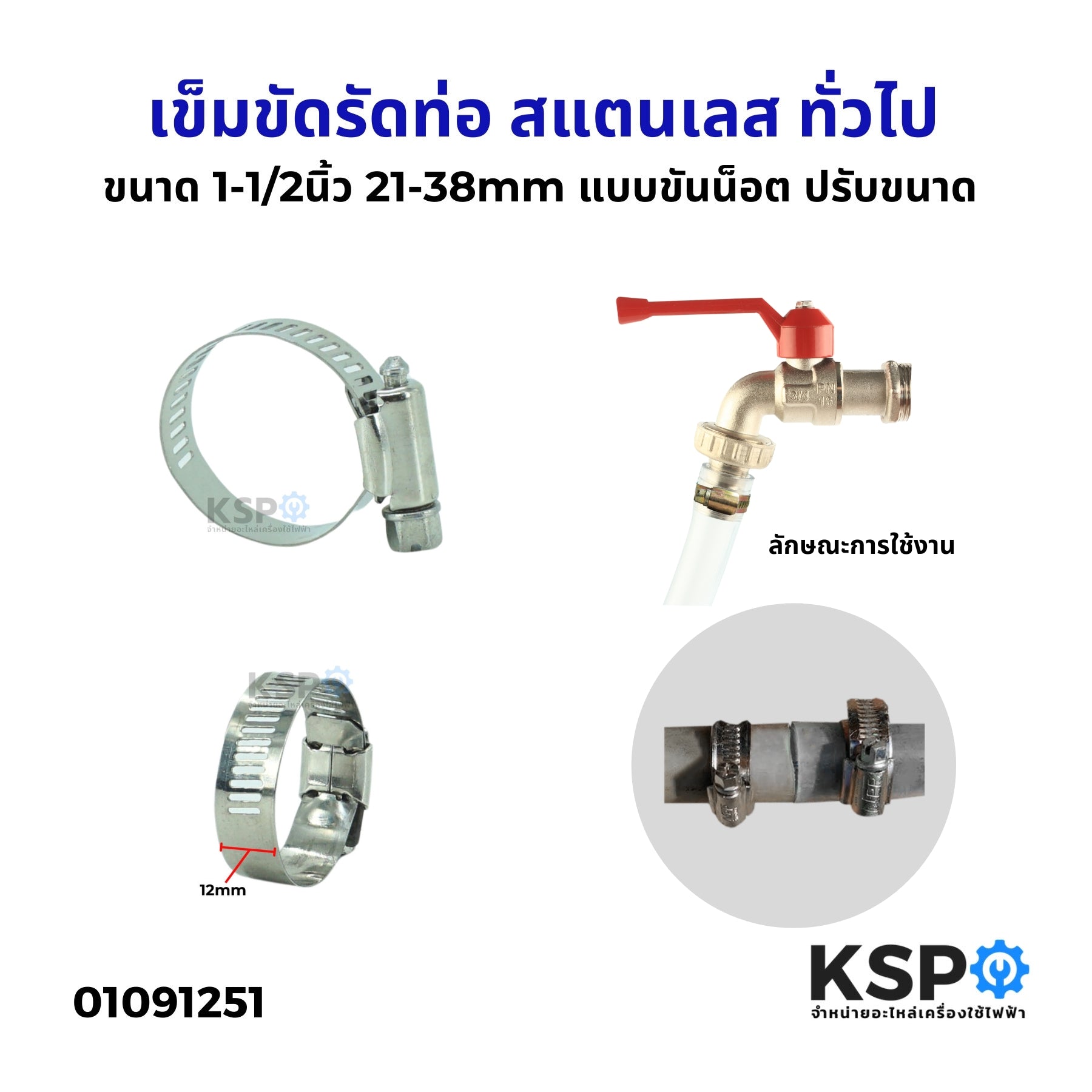 เข็มขัดรัดท่อสแตนเลส ขนาด 1-1/2นิ้ว 21-38mm ทั่วไป แคลมป์รัดท่อ เหล็กรัดท่อ ท่อน้ำ ท่อน้ำมัน ท่อยาง รัดสายยาง สายแก๊ส แบบขันน็อต ปรับขนาด