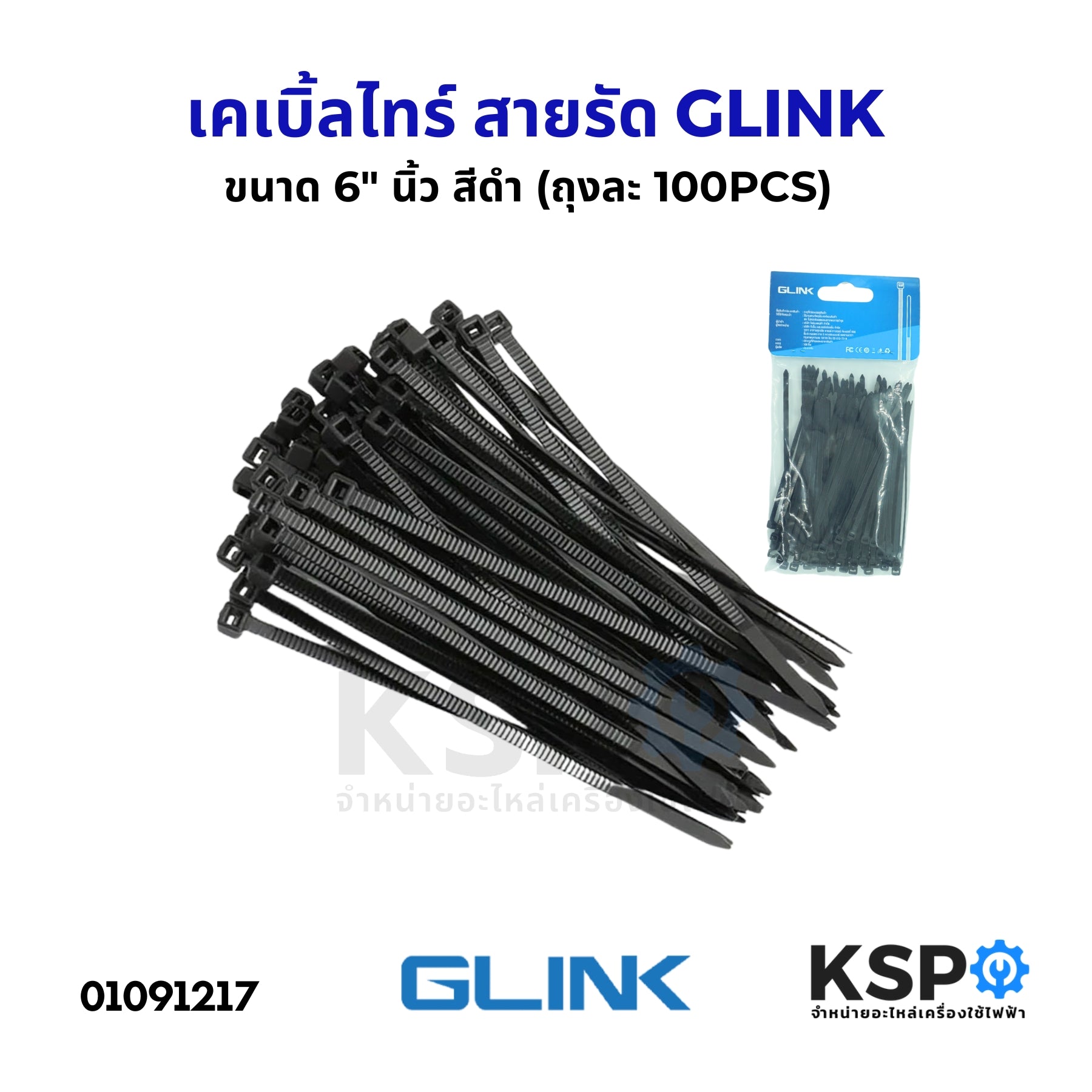 เคเบิ้ลไทร์ สายรัด GLINK จีลิงค์ CABLE TIE 6" นิ้ว BLACK (ถุงละ100PCS) เกรดพรีเมี่ยม หนา เหนียว ทนแรงดึงสูง