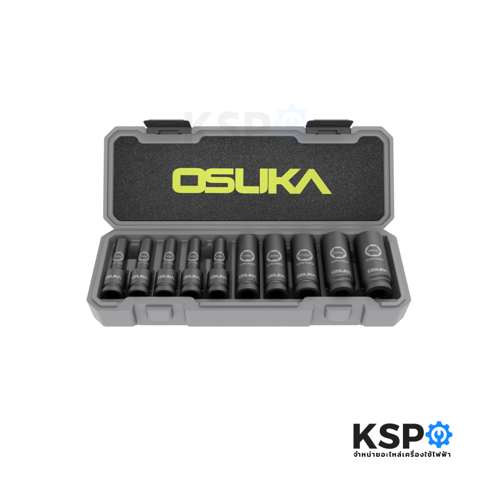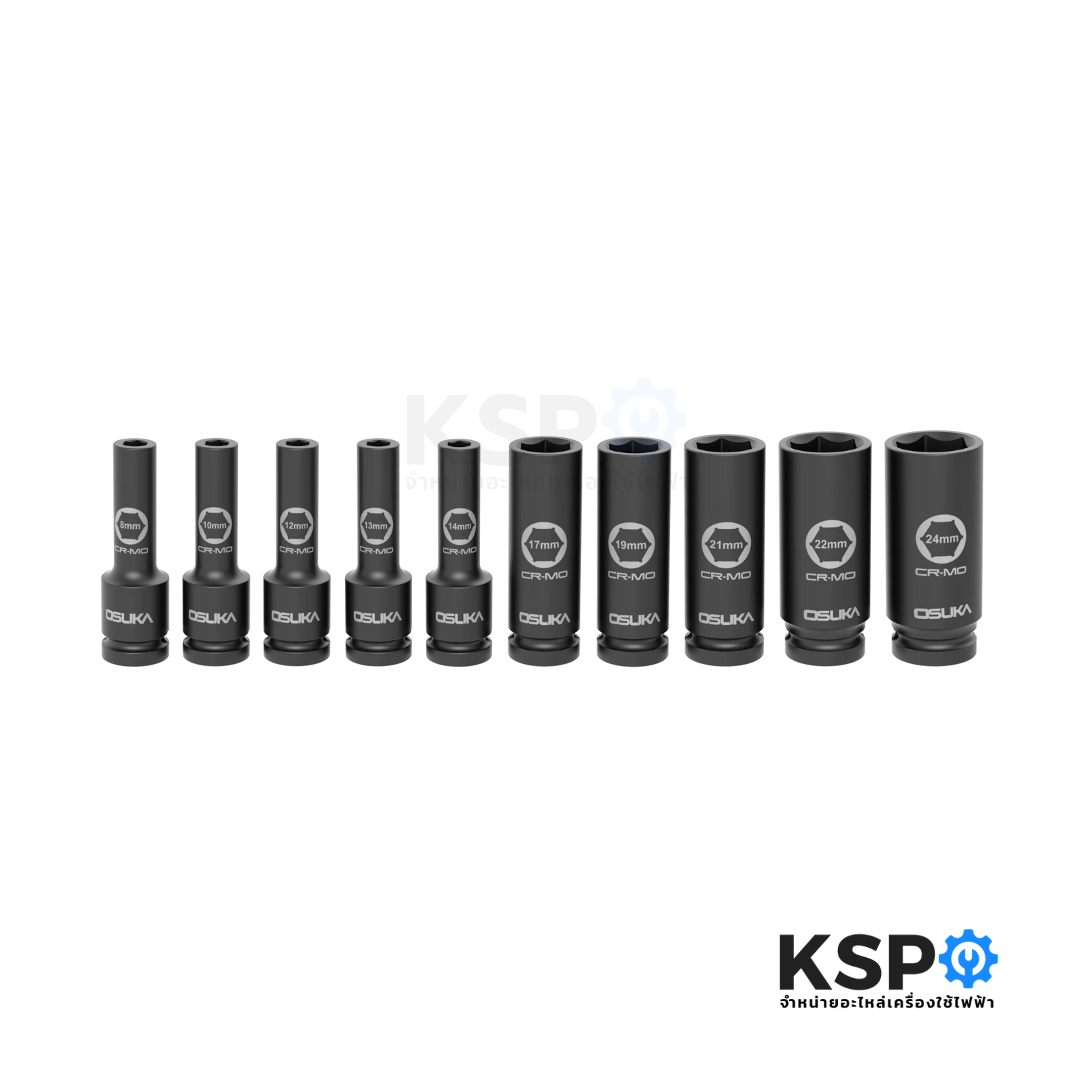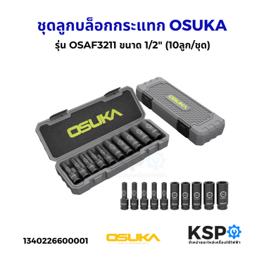 ชุดลูกบล็อกกระแทกยาว 1/2" (10ลูก/ชุด) OSUKA รุ่น OSAF3211 วัสดุบล็อกทำด้วยเหล็ก (แท้) เครื่องมือช่าง